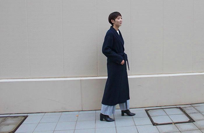 モデル身長170cm 着用サイズ1 SIZE(cm) 1:着丈115 肩幅50 身幅57 袖丈53 QUALITY ウール67% アルパカ28% ナイロン5%