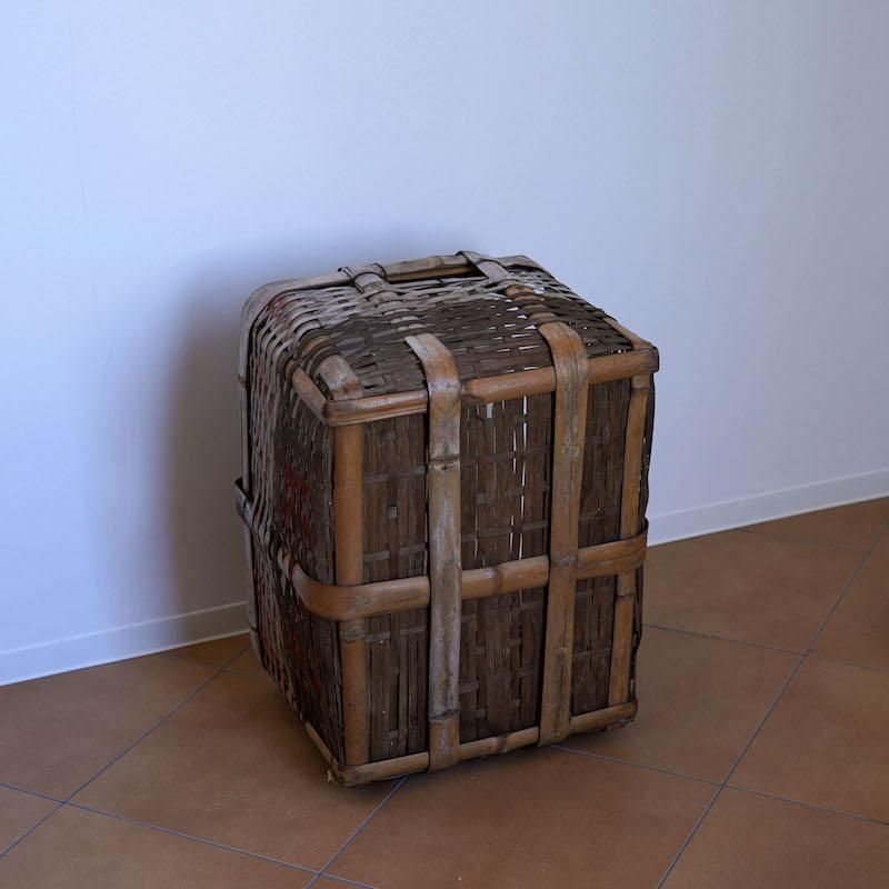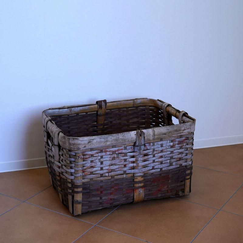 日本の古い竹細工の収納籠です。大枠には太めの竹を使用し、その間を繊細に竹網した逸品です。 長方形で使い易くデザインされた形状が日常にすんな入りと溶け込んで行くイメージを持たせてくれる。 経年からくる竹の割れや穴、変色等ございますが、長い年月を経て生まれたその質感やペイントなどが良い雰囲気を醸し出しています。 幅:48 奥行き:36 高さ:28