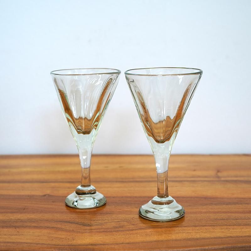 波状の鉄の型を使用して作られた模様がやわらかな印象の中に変化をもたらしている’おおやぶみよ’さんのロングステムのワイングラスです。 通り抜ける光はより屈折し、新しい表情を見せてくれる。 ワインやお酒など素敵な夜に最適です。 ※作品ひとつひとつハンドメイドで作られているため大きさや形、色等違いがございます。それぞれを個性としてお楽しみ頂けますと幸いです。 SIZE(cm) 幅:9 高さ:17.5〜18