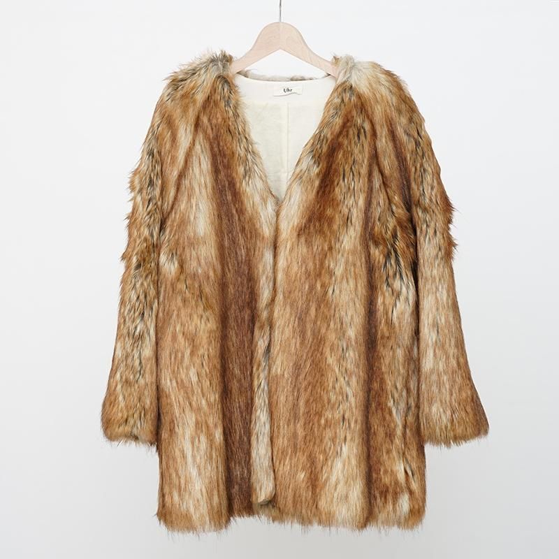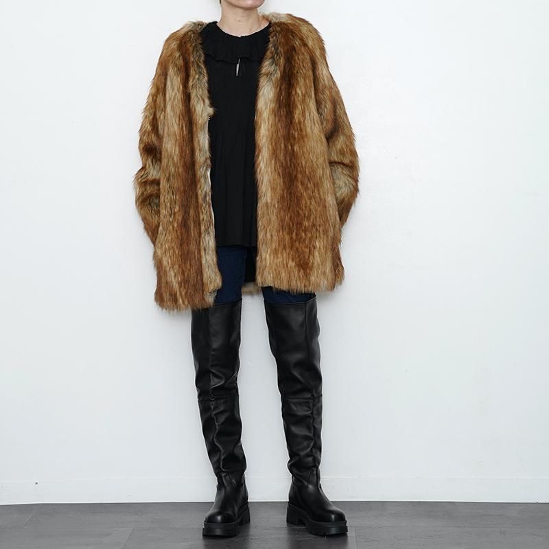 肌触りの良いエコファーを贅沢に使用したミドルコート。 お尻が隠れる程の着丈で新鮮なシルエットに。襟元はVネックの仕様ですっきりとした印象になります。 裏地付きなので袖通りも良く、ボリュームのあるインナーも合わせやすくなっています。 着るだけでお洒落度が増す冬のアイテムです。 モデル身長155cm 着用サイズF SIZE(cm) F:着丈80 身幅59 裄丈69 QUALITY ACRYLIC100% l202212181