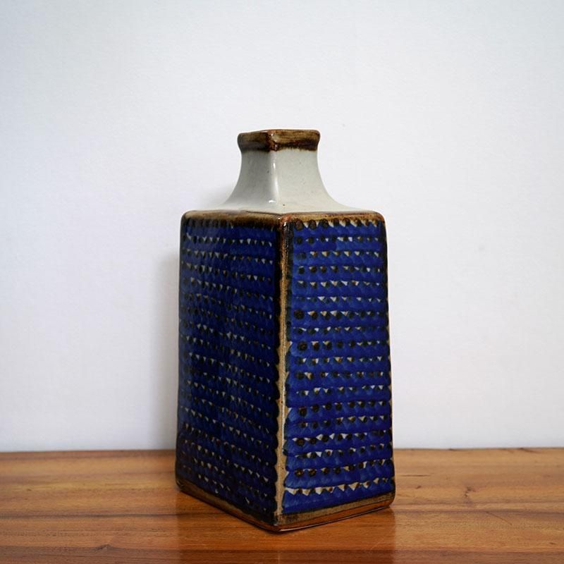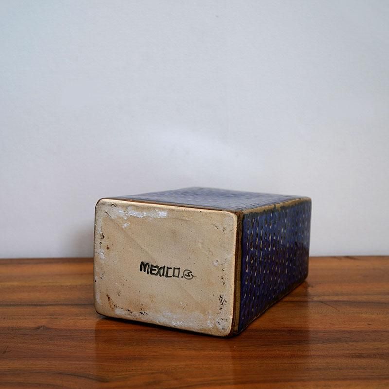 メキシコのメキシコシティに工房を構えるサンヘルマン・セラミカの大きめな四角柱型の花器です。 サンヘルマンはファミリー経営の工房で、1983年にTonalaにて設立されました。 トナラは元よりメキシコ最大の陶器の町として栄え、そのどこかファニーなモチーフにオリエンタルな絵付けが特徴的で国内外に高い評価を得ています。メキシコの民藝品はほとんどがファミリー経営で、その技術を継承し、また新しい感覚取り入れ発展していきました。 こんな歴史ある地にて始まったサンヘルマン・セラミカですが、設立当初から販売のほとんどをメキシコシティでおこなっており、3年後には工房をメキシコシティ近郊へと移し、発展を遂げます。 現在もファミリーに加え数名の職人と伝統を守りながら常に新しいデザインを模索し、メキシコの民藝の第一線で作品を世界に発信しています。 サンヘルマン特有の三角と丸を細かく組み合わせた模様が斬新であり、手書きで施されるそれは素朴で温かみのある表情を見せています。 Size(cm) 幅:13.5 奥行:10.5 高さ:27