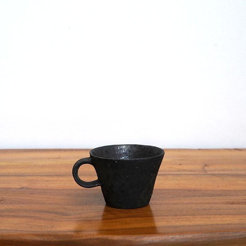 ヴィンテージ感があり、土の様であり石の様でもある自然な雰囲気を纏った水谷智美さんの深いブラックからブラウンのカラーが特徴的なマグカップです。