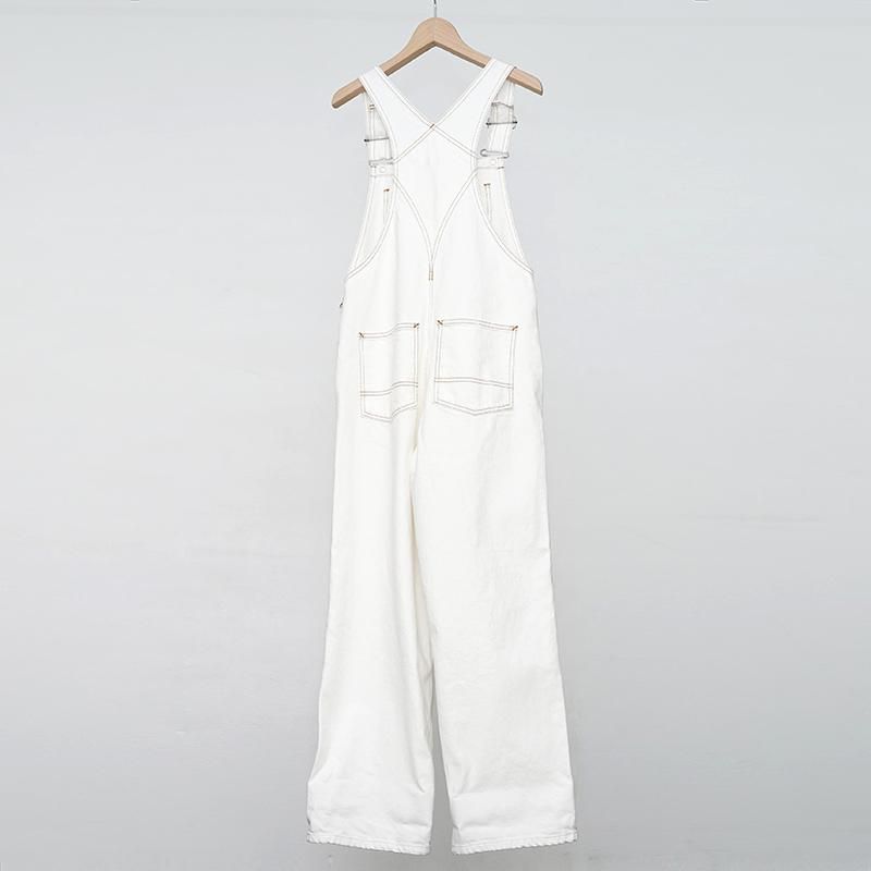 新作のオーバーオールは、今までよりもゆったりと着れるシルエットに。 古着等の本来のオーバーオールの仕様はうしろのダイヤ部分が1枚の仕様になっているのですが、 その分用尺がかかるため現代のオーバーオールはハギになっていることが多いです。 こちらは、本来の仕様を忠実に再現したデザインとなっております。 膝に加工も施し古着の様な雰囲気に仕上げました。 11.5OZのムラの少ない空房糸を使用したデニムで、加工した際にシボ感がでて、表情がでやすいのが特徴です。 モデル身長155cm 着用サイズ32 SIZE(cm) 32:ウエスト74 股上29.5 股下67 裾幅24 QUALITY 素材:コットン100% 生産国:日本製 l20236181