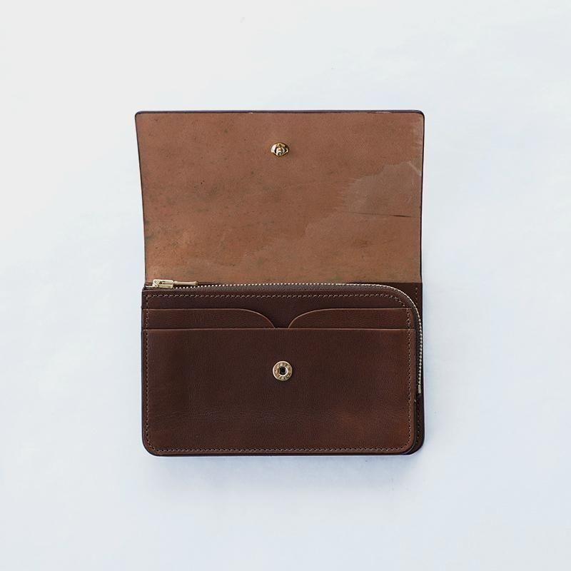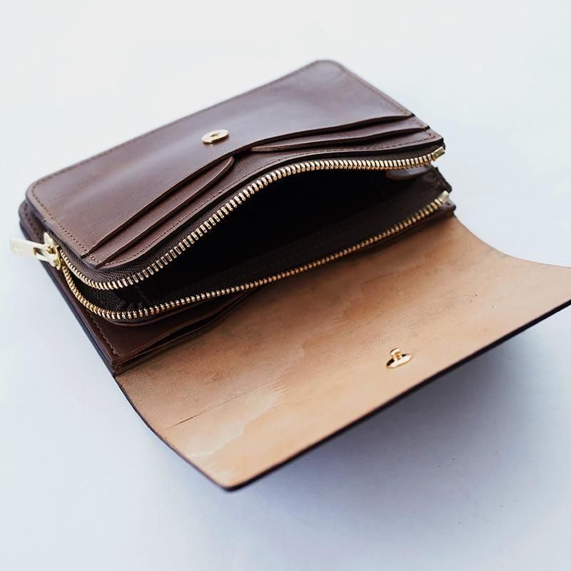 レザーの性質上、製品により個体差がございます。 予めご了承ください。 24AWシーズンより、内側のレザーがSHSレザー(ホーウィン)からダブルレザー(イタリア)に変更になりました。 アメリカの老舗タンナー「ホーウィン社」のコードバンを使用した財布です。 コードバンは農耕馬の臀部で、革は一頭あたりの採れる量が少なくとても希少な革となっています。 そして、裏表のない一枚革の単層構造。 歪んだり型崩れが起こりにくく経年変化も楽しめ、長く愛用できます。 また、使い込み方によって、表情もそれぞれ異なっていく点も面白いポイントです。 ジップにはEXCELLA ZIPを採用。 L字型の開閉部にすることで取り出しやすい作りとなっています。 片手サイズのこちらは、ポケットやカバンにサッと入るサイズ感。 カード、お札、コインなど毎日お使いするものはしっかり収納でき、かつ、かさばりにくいため持ち運びにとても便利です。 SIZE(cm) F:タテ9 ヨコ13.5 厚さ3.5 QUALITY Cordovan