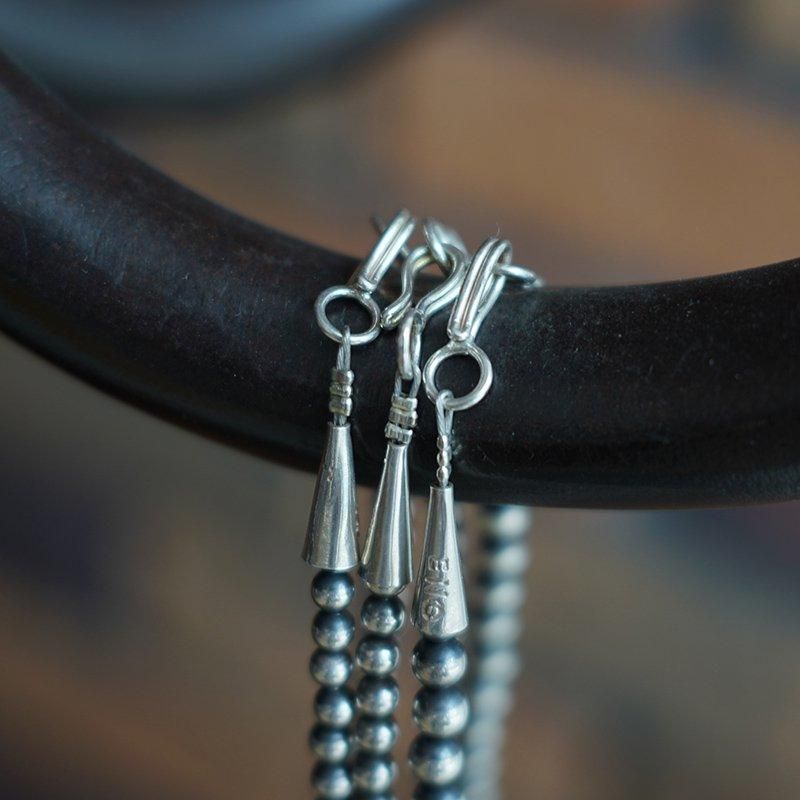 1996年生まれの若きナバホ族女性アーティスト、Ericka Nicolas Begay(エリッカニコラスビゲイ)。 全てオールハンドメイドにこだわり、女性らしさを最大限に活かした素晴らしい独創的な作品を作り出しています。 シルバープレートを半球状にくり抜いた2つを溶接することでやっと1つ完成するナバホパール。 そのナバホパールを小ぶりに仕上げることで、伝統的な雰囲気ながら、ミニマルな印象です。 素材にも強いこだわりを持ち、シルバーを溶かす事から始まる全ての工程をていねいに行っています。 シルバーの他にも一般的には安価に済ませるために使用するアルミや真鍮などもシルバーと同じように手間をかけインゴットで製作をしています。 昔ながらの特徴と現代的なデザインが融合した、これまでにない新しいデザインのインディアンジュエリーブランドです。 ※オールハンドメイドで昔ながらの製法で作られてます。一つ一つ手作業のため、個体差がある場合がございます。ご了承ください。 SIZE(cm) ONE QUALITY SILVER925 m20244281 m20244283