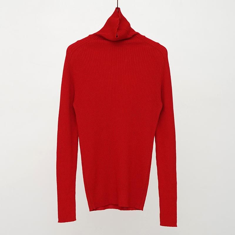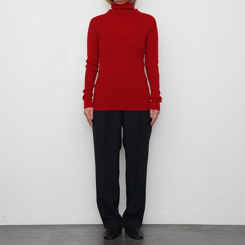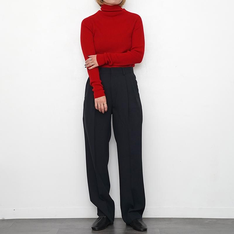 リブのタートルネックニットはずっと好きな定番アイテム。リブに限っては身体に沿うくらいコンパクトなサイズが好みで、着た時に体のラインがキレイに見え、重ね着などにも使いやすい。タートルネックは折り返すのではなく、クシュっとたるませて着たい。カシミヤ100%とシルクの混紡糸100%を撚糸し、カシミヤのぬめりとシルクの艶やかさを持った、繊維で軽い素材を使用。素材の良さを贅沢に感じられるアイテム。 モデル身長155cm 着用サイズ1 SIZE(cm) 1:着丈66 身幅36 裄丈72 QUALITY CASHMERE70% SILK30% l202312221