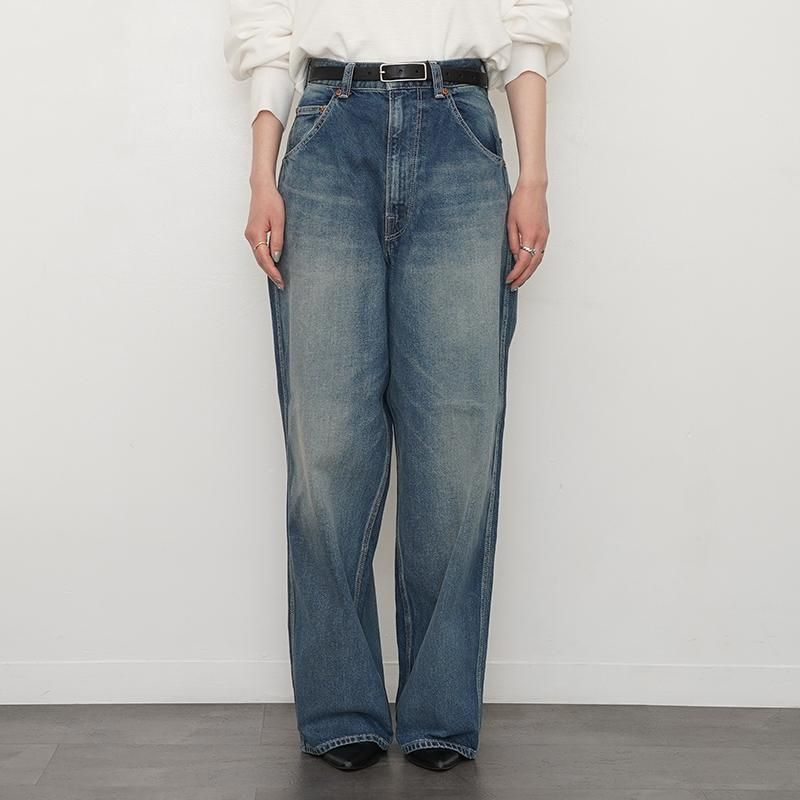 21AWで発売していたTOOL PANTSをデニムでも作ってみました。ペインターパンツをシンゾーンらしく落とし込み、ハイウエストでありながらヒップのボリュームあるデザインが特徴です。生地と加工感は24SSのリメイクデニムSKと同じにしました。ボリュームがありながら女性らしく履けるパンツになっています!またエクリュは縦糸と横糸の色を変えることで単色にならず、ステッチの色を横糸のベージュに合わせていて、ステッチの見え方にもこだわりました。デニム生地とはまた違った雰囲気で履いていただけます モデル身長155cm 着用サイズ32 SIZE(cm) 32:ウエスト68 股上31 股下72 ワタリ36.4 裾幅23.5 34:ウエスト71 股上31.5 股下74 ワタリ37.2 裾幅24 QUALITY COTTON100% 生産国:日本製 l202412211