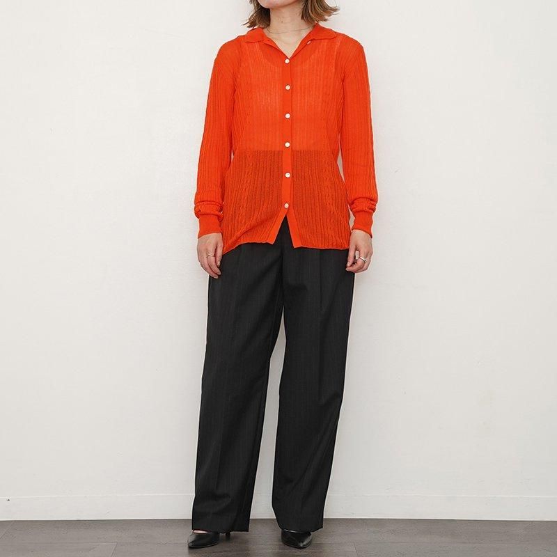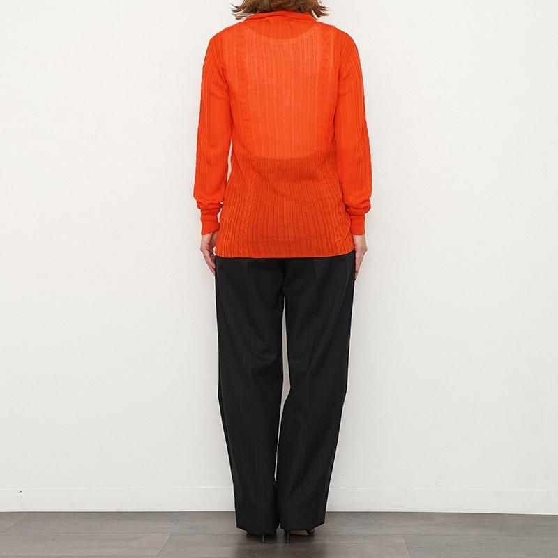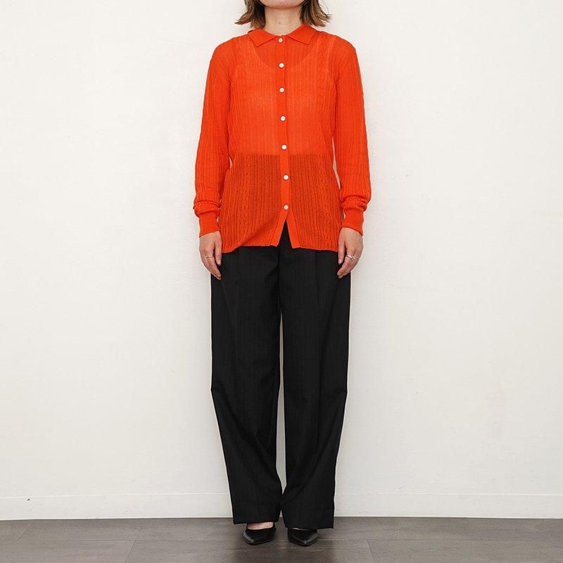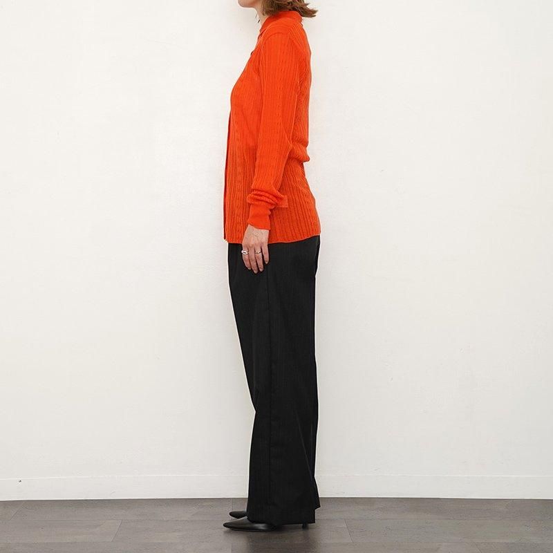 テンセルとカシミア混の糸をハイゲージで編んだカーディガン。身頃は2本の細いケーブル編みを差し込んだランダムリブで仕上げました。タイトなシルエットと程よい透け感が、繊細で知的な印象を与えてくれます。ジャケットやセットアップのインナーとしてもぴったりです。 モデル身長155cm 着用サイズF0 SIZE(cm) F0:着丈63 肩幅40 身幅43 袖丈62 QUALITY TENCEL90%, CASHMERE 10% 生産国:CHINA