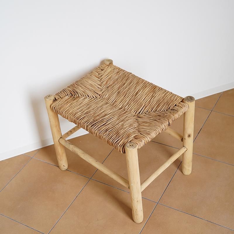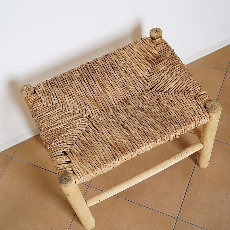 フランスの民藝品とも言えるこのデザインは特に40年代〜60年代頃に様々な工房にて制作されていていました。 Charlotte PerriandやRobert Sentouを代表格に様々なデザインや編み方が生み出され、この天然素材のラッシュ編みはフランスを代表する民藝家具となりました。 とてもミニマルで雰囲気のあるスツールです。 ※経年によるラッシュの擦れや傷、ベース部分の擦れや色抜け等ございますが、使用には問題ございません。 現状ヴィンテージ品である事をこ理解の上、味や雰囲気としてご検討下さい。 Size(cm) 幅: 44 奥行き: 34 高さ:36