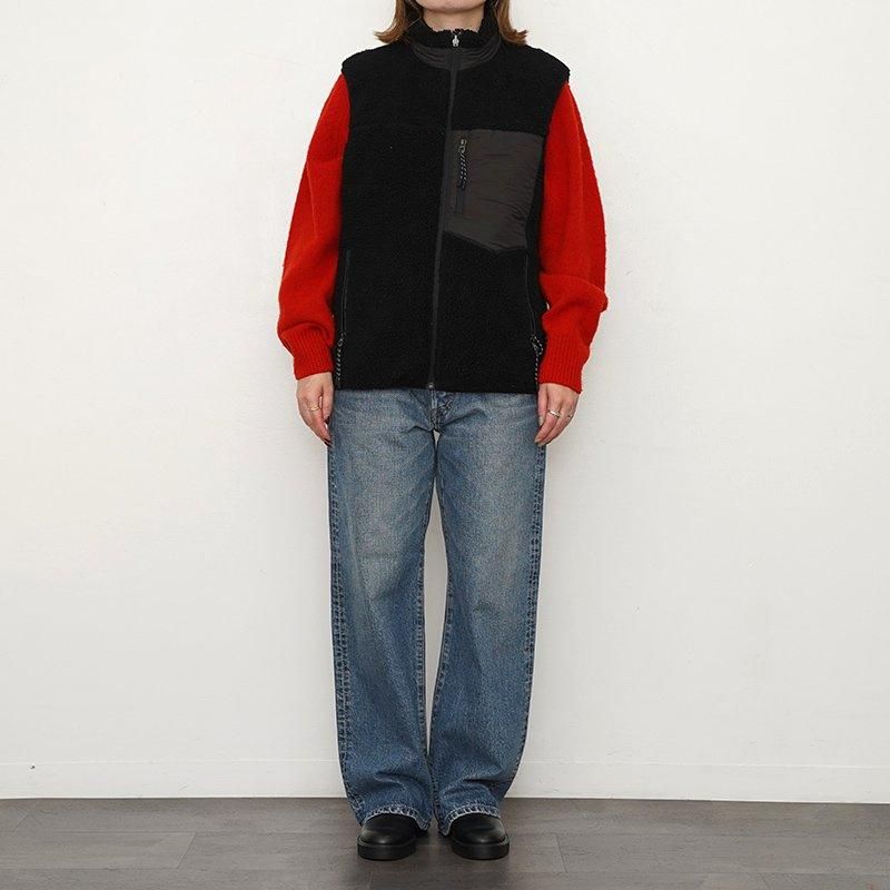 表側にダウン、裏側にボアを採用したリバーシブル仕様のベスト。 MOUNTAIN LINEのベストセラーシリーズです。 ダウン×ボアの2重構造は、風を通さない防寒性の高さと、表情の違うリバーシブル仕様で、アウトドアでもタウンユースでも着用できるデザインとしています。 表側両脇、裏側左胸と左右脇にファスナーポケットが付く気の利いたデザイン。 ボアを使用したリバーシブル商品という特性上、ボア側を内側に着用するとタイトになります。余裕を持って着用希望のお客様はワンサイズアップをおすすめします。 モデル身長175cm 体重56kg 着用サイズL レディースモデル身長155cm 着用サイズS SIZE(cm) S:着丈63 肩幅42 身幅51 M:着丈65 肩幅42.5 身幅53 L:着丈67 肩幅43 身幅56 QUALITY 表地(無地):ナイロン100% 表地(プリント):ポリエステル100% 裏地:ポリエステル100% 別布:綿60% ナイロン40% 中わた:ダウン95% フェザー5%