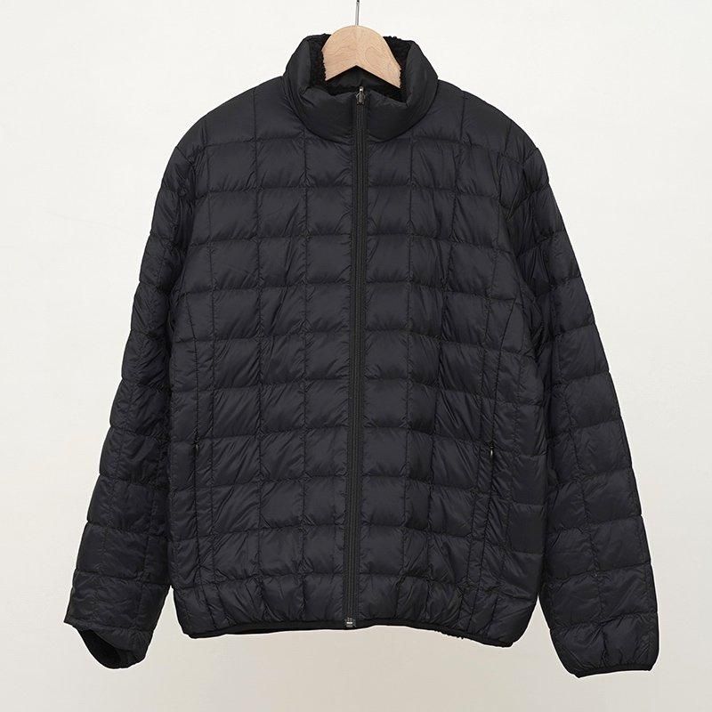 表側にダウン、裏側にボアを採用したリバーシブル仕様のジャケット。 MOUNTAIN LINEのベストセラーシリーズです。 ダウン×ボアの2重構造は、風を通さない防寒性の高さと、表情の違うリバーシブル仕様で、アウトドアでもタウンユースでも着用できるデザインとしています。 表側には、高密度ナイロンのマイクロリップストップ生地を使用。 表側両脇、裏側左胸と左右脇にファスナーポケットが付く気の利いたデザインです。 袖口と裾には、風が入りにくいよう、ストレッチパイピングテープを使用。 ボアを使用したリバーシブル商品という特性上、ボア側を内側に着用するとタイトになります。余裕を持って着用希望のお客様はワンサイズアップをおすすめします。 モデル身長175cm 体重56kg 着用サイズL レディースモデル身長155cm 着用サイズS SIZE(cm) S:着丈62 肩幅44 身幅51 袖丈62 M:着丈65 肩幅45 身幅54 袖丈63 L:着丈67 肩幅46 身幅56 袖丈63 QUALITY 表地(無地):ナイロン100% 表地(プリント):ポリエステル100% 裏地:ポリエステル100% 別布:綿60% ナイロン40% 中わた:ダウン95% フェザー5%