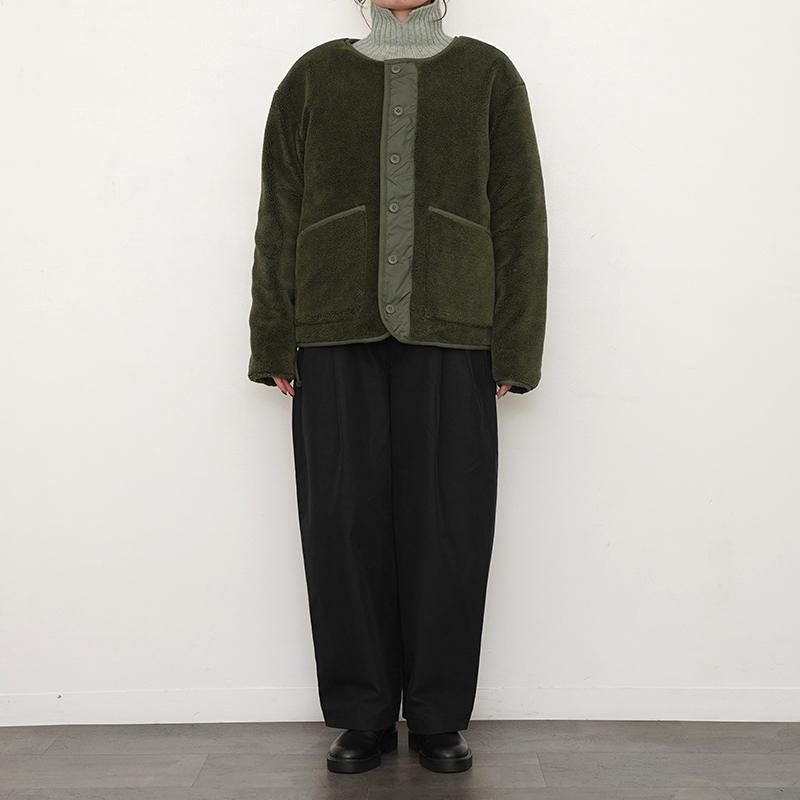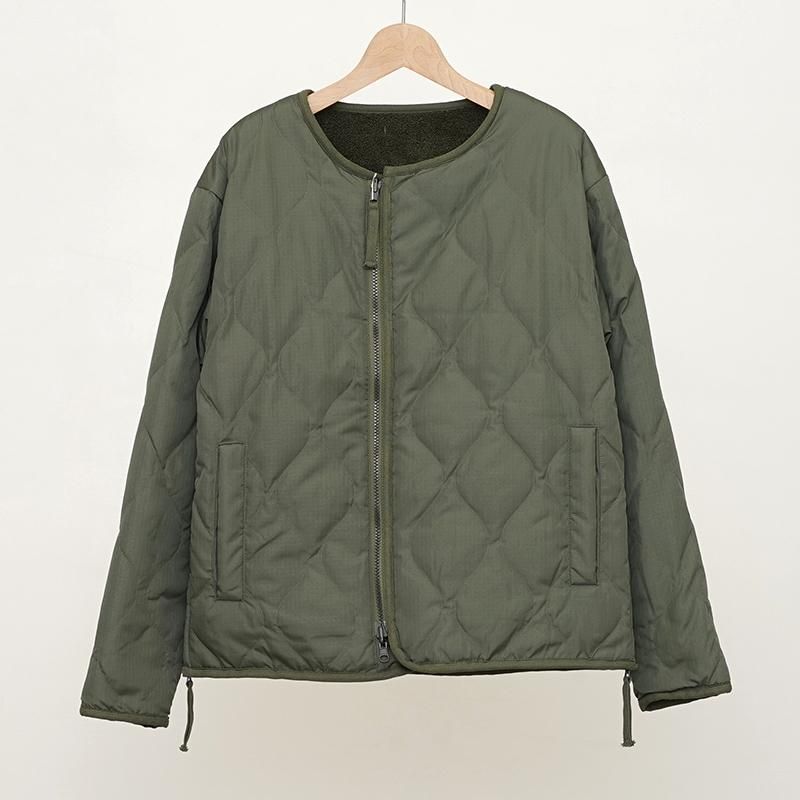 表側にダウン、裏側にボアを採用したリバーシブル仕様のミリタリージャケット。 ダウン×ボアの2重構造は、風も通さない防寒性の高さと、表情の違うリバーシブル仕様で、様々なシーンでも着用できるデザインとしています。 MILITARY LINEの特徴となる両脇スリットファスナーは、可動域が広がることで動きやすくなり、ボトムのポケットに手も入れやすく、重ね着を楽しんでいただける仕様となっています。 ボアを使用したリバーシブル商品という特性上、ボア側を内側に着用するとタイトになります。余裕を持って着用希望のお客様はワンサイズアップをおすすめします。 モデル身長175cm 体重56kg 着用サイズM レディースモデル身長155cm 着用サイズS SIZE(cm) S:着丈63 肩幅50 身幅54 袖丈57 M:着丈64 肩幅51 身幅56 袖丈58 QUALITY 表地:ポリエステル100% 裏地:ポリエステル100% 中わた:ダウン95% フェザー5%