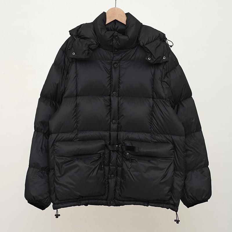 高密度マイクロミニリップストップ生地を使用し800FPの上質なダウンを詰め込んだ、ボリューム感が魅力のベンチダウンジャケット。 フロントには2WAY式の立体感あるジップ付きのポケットと、そのサイドにはハンドウォームポケット付き。 着脱可能のフードや、裾元のアジャスターにて絞り調整可能、腰元のストラップでウエストマークを付けれたりと、シルエットの変更を大いにお楽しみいただける機能+ファッションライクなダウンジャケットです。 また、ボリュームがありながらも、同梱されているオリジナルの収納袋にコンパクトに収まる持ち運びの良さも◎。 SPORTS LINEのシリーズでもある、様々なスポーツへ応用できる汎用性と、日常的にも落とし込めるデザイン美が魅力的。 普段のスタイルから、少し綺麗なテイストまでと、上から羽織ってしっかりコーディネートが完成します。 ちょっとした旅行なんかにもとても便利ですよ。 メンズモデル身長175cm 体重56kg 着用サイズL レディースモデル身長155cm 着用サイズS SIZE(cm) S:着丈70 肩幅48 身幅57 袖丈63 M:着丈73 肩幅49 身幅60 袖丈65 L:着丈75 肩幅50 身幅63 袖丈67 QUALITY 表地:ナイロン100% 裏地:ポリエステル100% 別布:ポリエステル100% 中わた:ダウン95% フェザー5% m202411203