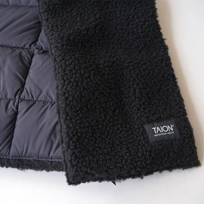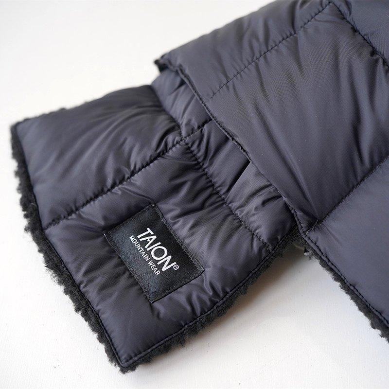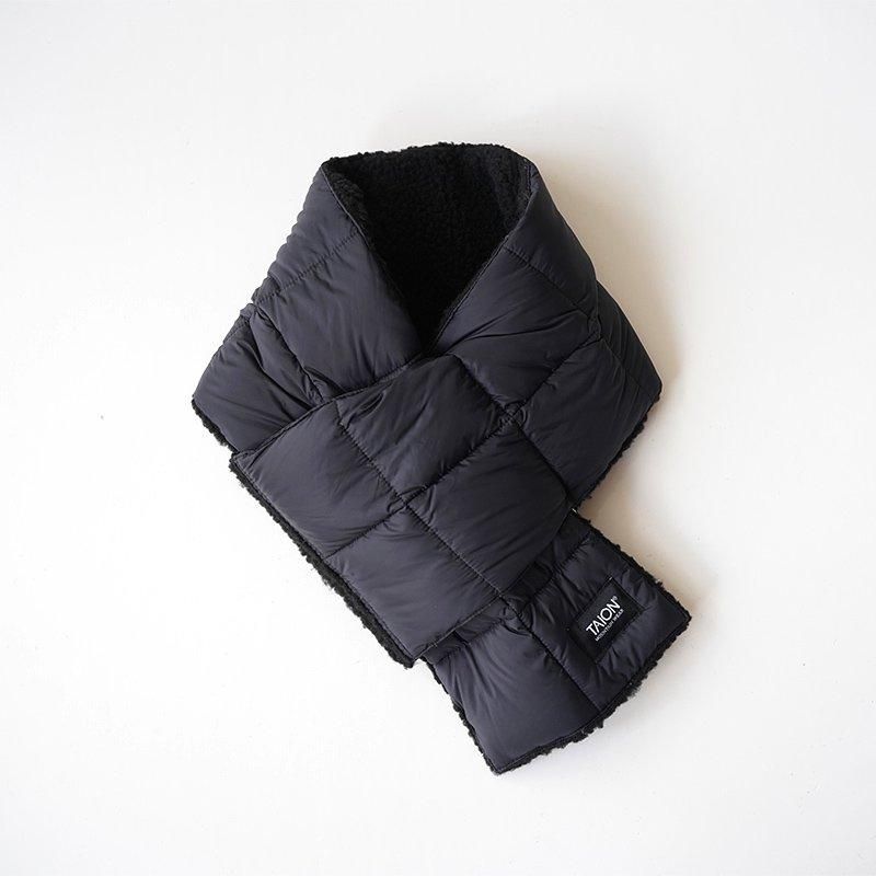 マウンテン リバーシブル ダウン×ボア マフラー TAIONの"MOUNTAIN LINE"シリーズ、リバーシブルのマフラーです。 MOUNTAIN LINEはタウンユースをはじめ、キャンプなどアウトドアシーンで着用できるインナーダウンを取り揃えたライン。 表地には高密度マイクロリップストップ生地を使用し、裏側にはボア生地を採用。 また中綿には、800FPと一般的な物より軽く崇高の高い上質なダウンを採用と保温力に特化した性能が魅力的。 保温力にもかなり特化した冬場に重宝するアイテム。 2種類の素材を表と裏で使い分けることができるので、スタイルによって見え方の変更も可能とファッション的にもしっかりお楽しみいただけます。 メンズレディース問わずお使いでき、ギフトにもぴったりなアイテムです。 SIZE(cm) ONE:全長90 幅16.5 QUALITY 表地(無地):ナイロン100% 表地(プリント):ポリエステル100% 裏地:ポリエステル100% 中わた:ダウン95% フェザー5%