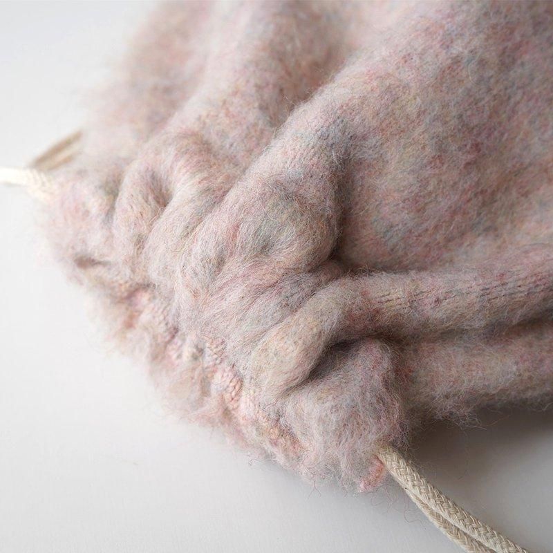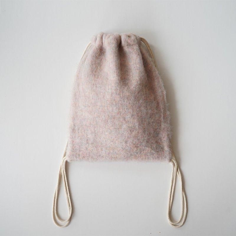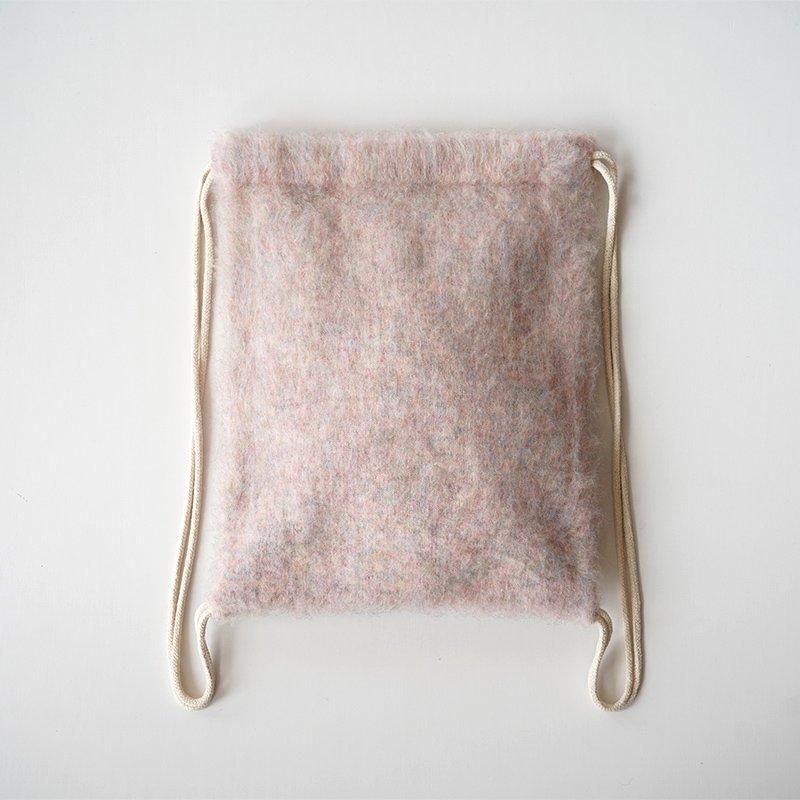 起毛のナップサック。 百聞は一見に如かず。見た通りの可愛いナップサックです。 シンプルなコートに差してください。 SIZE(cm) FREE:タテ36 ヨコ29 QUALITY アクリル37% ナイロン31% 毛27% ポリウレタン5% 紐/持ち手:綿100%
