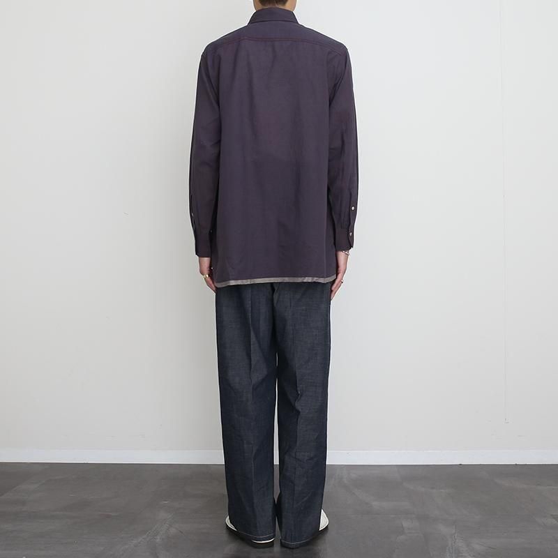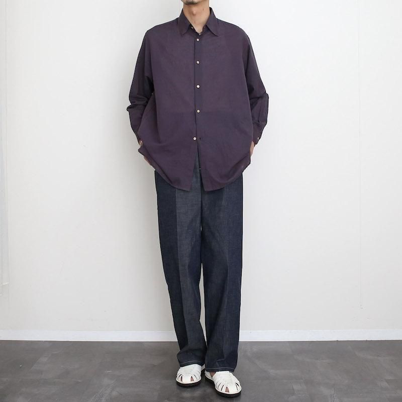 手作業でしか生まれない、温度のある一着。 前シーズン、初登場にして即完売したシャツ「GUPTA」が、待望の再登場。 インドにて、手紡ぎ・手織りのカディコットンで仕立てた、空気のように軽やかなハンドメイドシャツです。 デザインベースは、クラシックなシャルべ型。 それを、襟芯を用いず無数のステッチで成形するという狂気的なまでのディテールで再構築。 特注の真鍮ボタン、サイドスリットに刺繍された「M&S」、オリジナルのネームタグなど、細部に至るまで“偏愛”が宿ったプロダクトです。 シルエットはスクエアカットの裾で、やや縦長のボックス風。 リラックス感がありながら、どこか上品な抜け感もある、唯一無二のバランスが魅力。 真夏の1枚着にはもちろん、秋口にはジャケットやブルゾンのインナーにも。 季節を超えて寄り添う、新しい定番。 手仕事の温もりを、肌で感じてください。 モデル身長184cm 体重64kg 着用サイズ2 SIZE(cm) 1:着丈80 肩幅46 身幅60.5 袖丈61 2:着丈82 肩幅48 身幅62 袖丈62 3:着丈84 肩幅50 身幅63.5 袖丈63 QUALITY COTTON 100%
