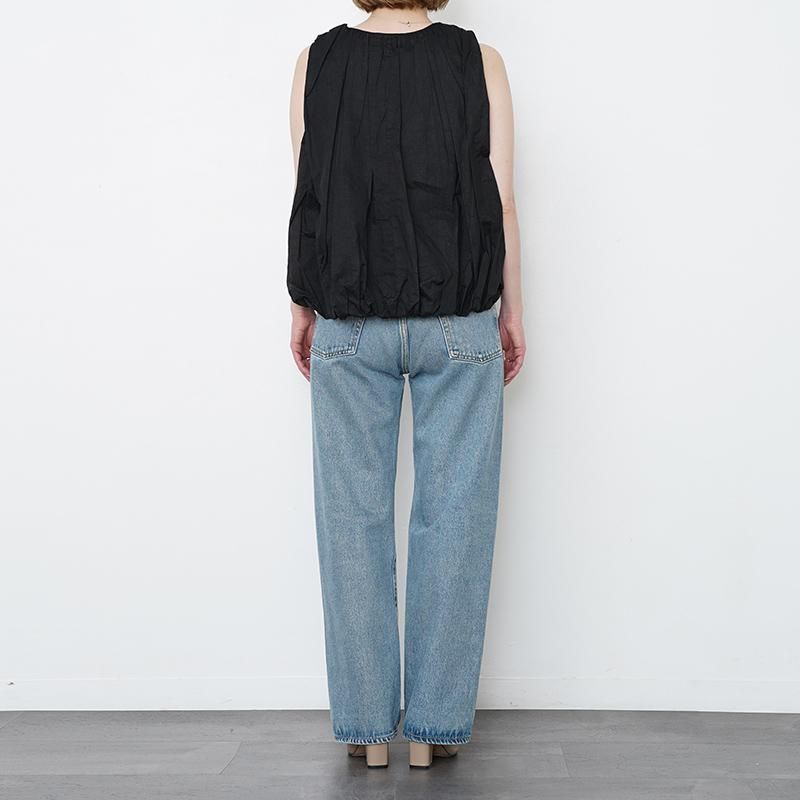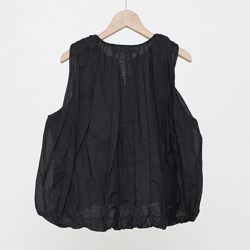 裾がふんわりとバルーンシルエットを描くギャザーブラウス。 丈はウエストまわりでコンパクトに収まるので、どんなシルエットのボトムスともバランスを取りやすく、合わせやすいブラウスです。 薄手のコットンオーガンジーを表だけでなく裏地にも使い、その柔らかくもシャリ感のある、爽やかな肌触りをふんだんに感じられます。 モデル身長155cm 着用サイズF SIZE(cm) F:着丈前51 着丈後56 肩幅30 身幅50 QUALITY COTTON100%