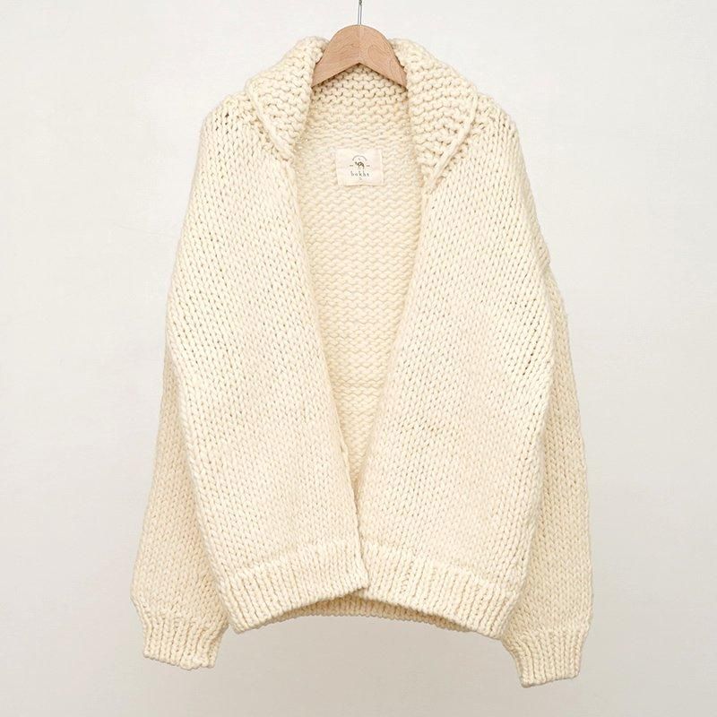 【20%OFF】【bukht ブフト】Peruvian Hand-knit Buttonless Cowichan Sweater WHITE