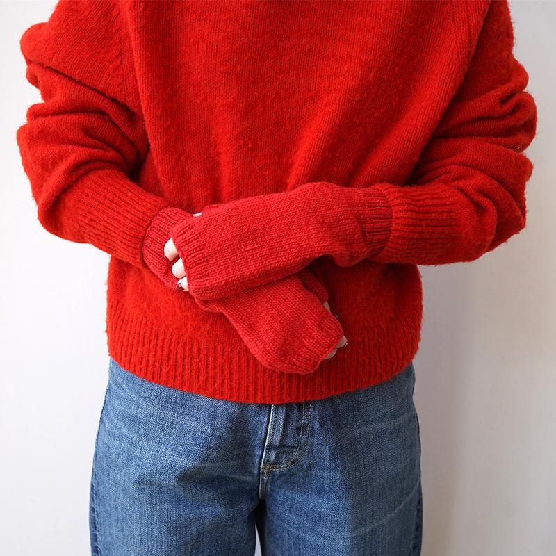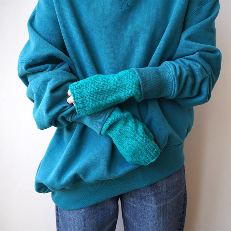 熟練の職人によるハンドニットのフィンガーレスグローブ。 ユニセックスで着用可能なことで、ギフトにもピッタリです。 南米ペルーにて、1個ずつ丁寧に手編みされたことで機械編みでは再現不可能な表情がポイント。 チクチク感もほぼ無いため扱いやすく、手洗い可能なのも嬉しいです。 全て手作業のため多くは生産出来ない点も、大量生産の現代だからこそ魅力的です。 ウール原料の綺麗な発色は1枚でもサマになり、真冬にアウターから覗いた際も静かな個性を演出。 ハンドニットながら抑えめな価格設定は見逃せません。 優れたデザインで保温性は確保しつつ、携帯電話などの操作のための着脱も不要、室内でも違和感なく着用が可能です。 アウターの袖先からアクセントとして見せたり、カラー展開も豊富で、コーディネートのアクセントになってくれたり、同カラーのニットで合わせるのも◎ スタンダードだからこそ常に活躍し、男女問わず秋冬を彩るアイテムです。 SIZE(cm) F:縦21 横9~ QUALITY WOOL 100%
