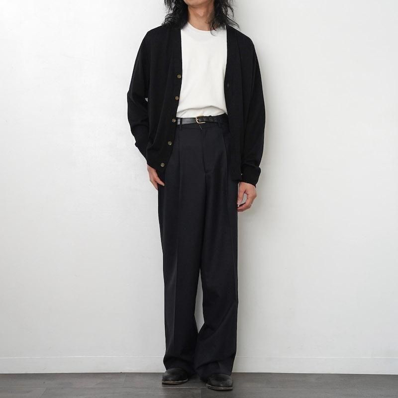 ウールのミドルゲージにて製作したVネックカーディガン。 Vゾーンのバランスに拘り、首に沿うよう天幅をやや狭めに設計、インナーにシャツやTシャツなどインナーを合わせた時に1番美しく見えるラインで前下がりの位置付けを行うなど、品のあるフロントラインが特徴的。 シンプルながらも試行錯誤して完成されたパターンやカッティングはニットプロダクトにおいてのプロフェッショナルだからこそできる技。 ウォッシャブル仕様、嫌な着心地は全くなく日常的にも取り入れやすい1着。 サイズレンジも豊富でメンズレディース問わず、タイムレスに活躍してくれるアイテムです。 モデル身長175cm 体重56kg 着用サイズL SIZE(cm) M:着丈68 身幅54 裄丈84 L:着丈70 身幅56 裄丈85.5 XL:着丈71 身幅58 裄丈87.5 QUALITY WOOL100%