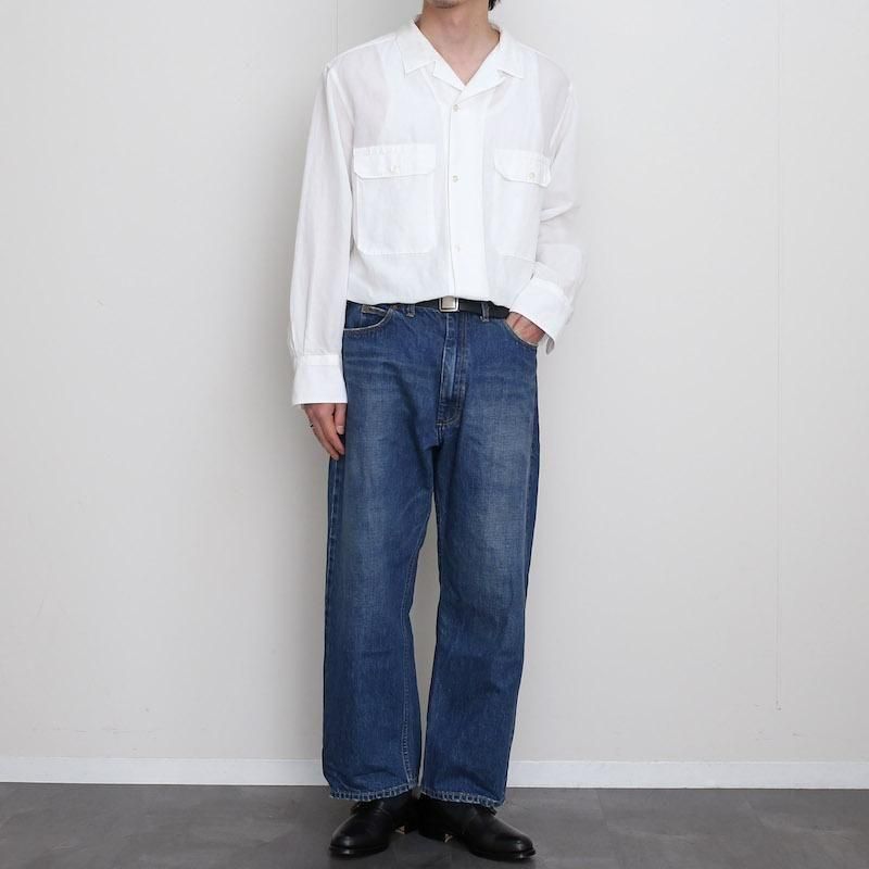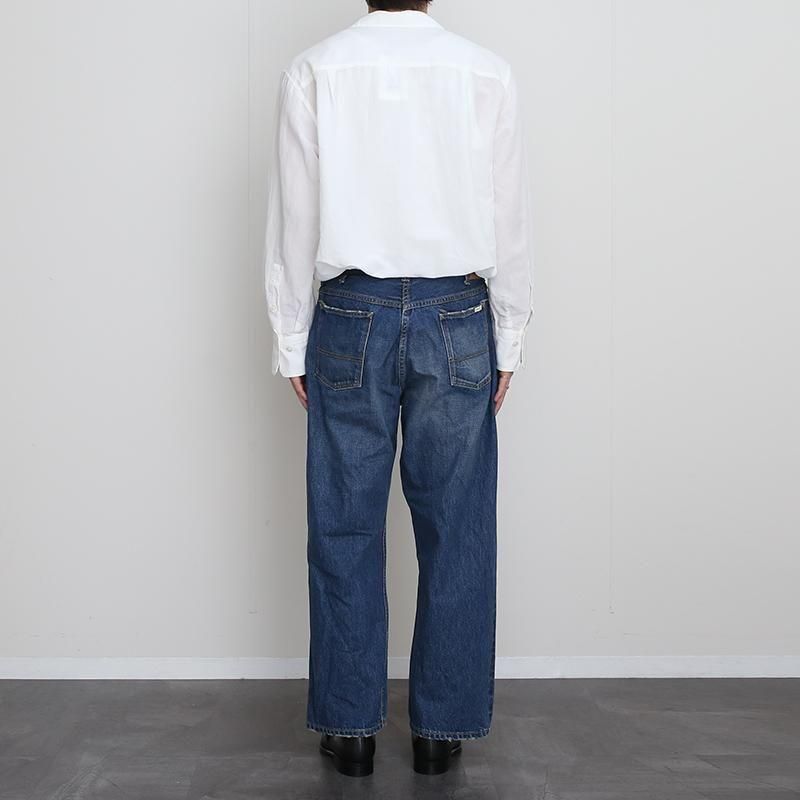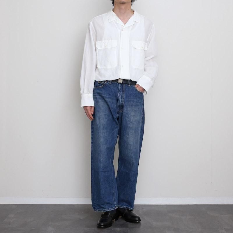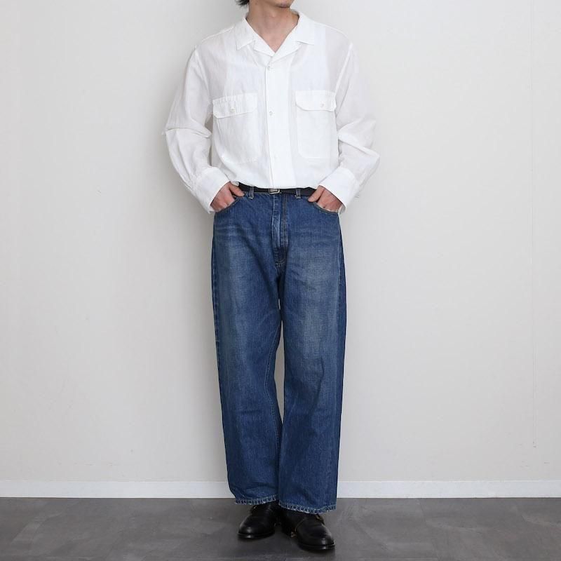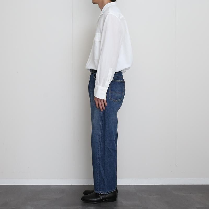 1950-60年代に生産されたPENNEYS FOREMOST 5pocket jeansをリプロダクションしました。 当時の無骨なシルエットを参考に、ユニオンスペシャルの巻ミシンを中心に縫製しアメリカ、ロサンゼルスの工場で生産しました。 生地にはCone denim / white oakのデッドストック 2ndクオリティー/セルビッチデニムを採用しました。 ボタンには二本爪タイプのホックを使用し、経年変化したヴィンテージ感を演出しています。 シルエットはストレートで、股上は少しゆとりがあるスタイルは、今っぽく着こなしやすく取り入れやすいアイテムだと思います。 サーマルやシャツをタックインするスタイルや、トップスには綺麗目なジャケットを合わせるスタイリングも素敵です。 近年、アメリカ製の洋服の流通量は、皆無に近い状況です。 アメリカ生地&アメリカ縫製の希少価値のあるmade in USA を是非、お楽しみください。 サイズ比較↓ モデル身長177cm 体重63kg 着用サイズ32 SIZE(cm) 30:ウエスト74 股上32 股下64 ワタリ33 裾幅21 32:ウエスト80 股上34 股下69 ワタリ34 裾幅21.5 34:ウエスト82 股上35 股下70 ワタリ35 裾幅22.5 QUALITY COTTON100% m20254292 m20255242