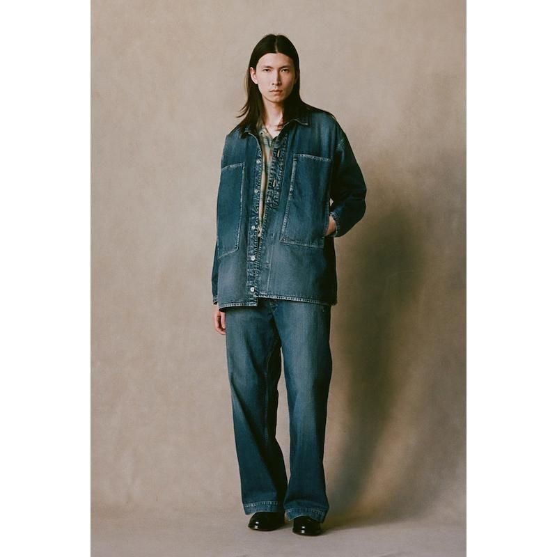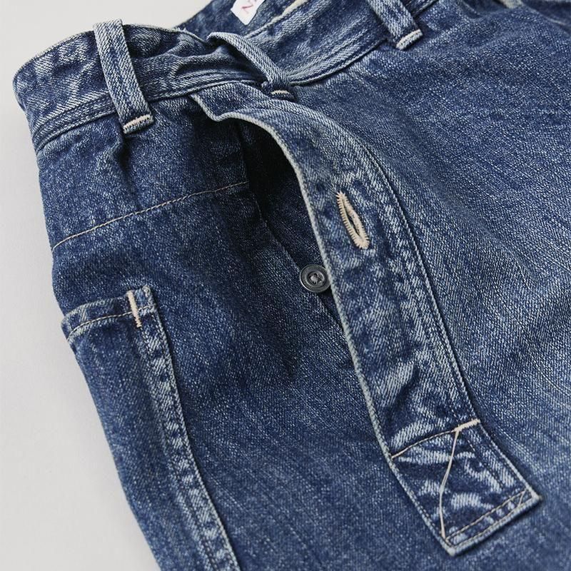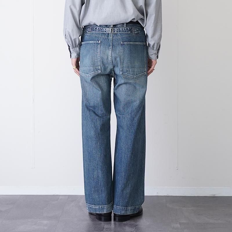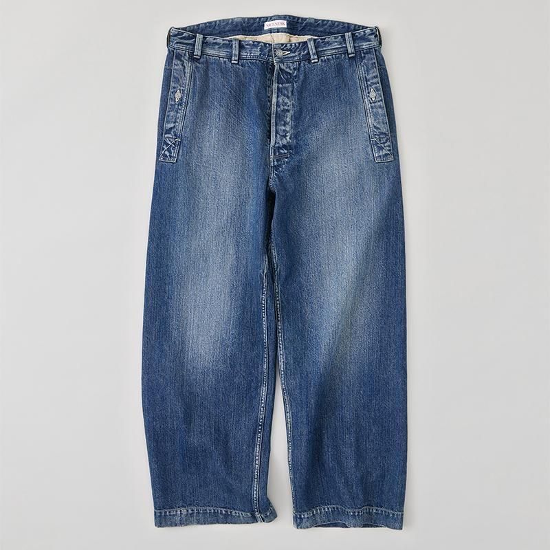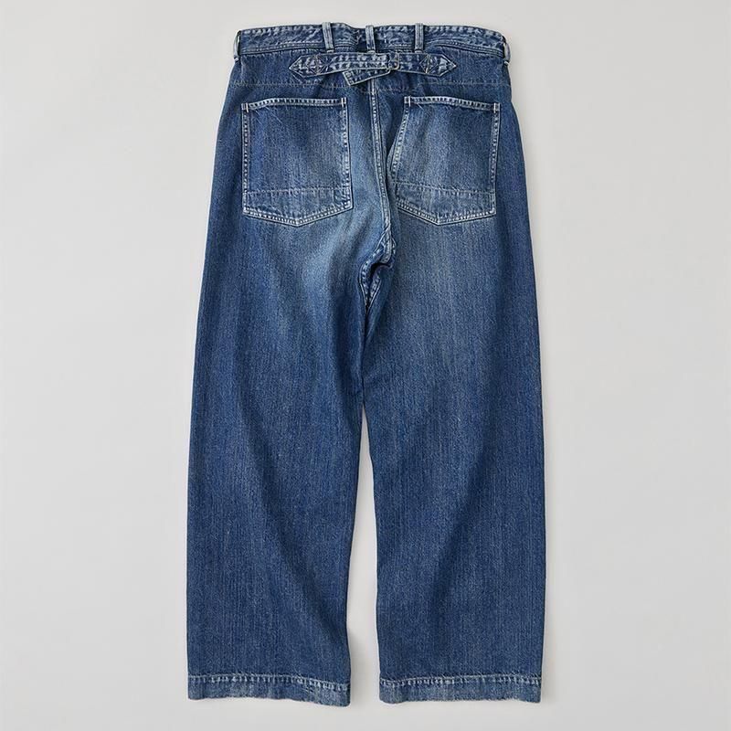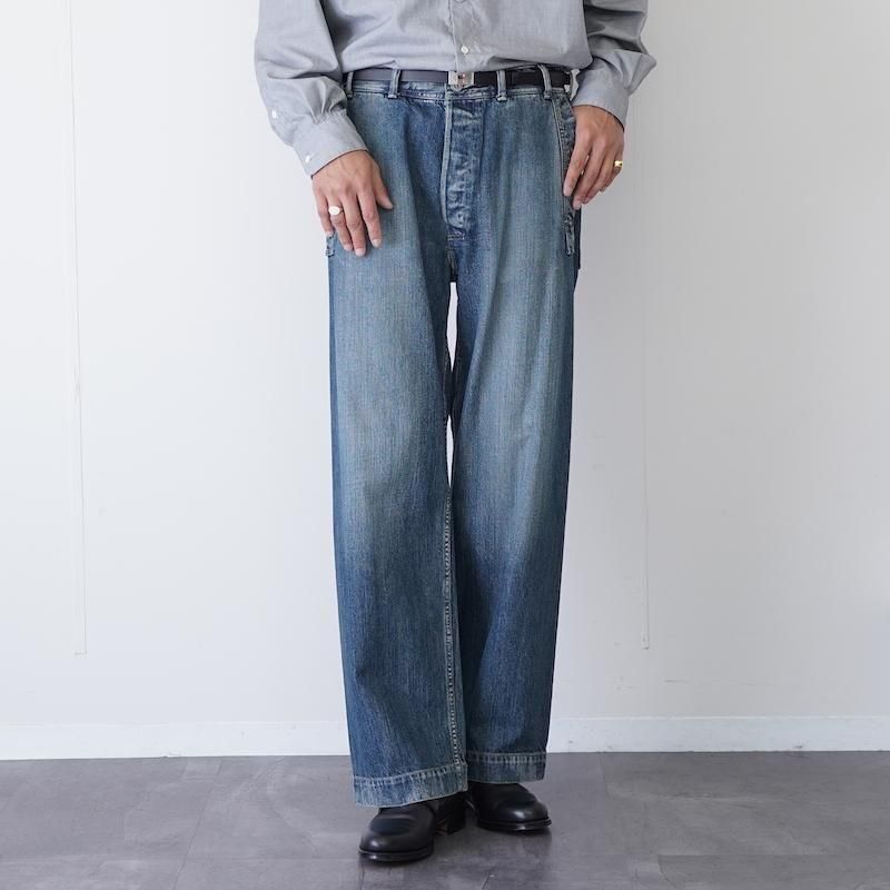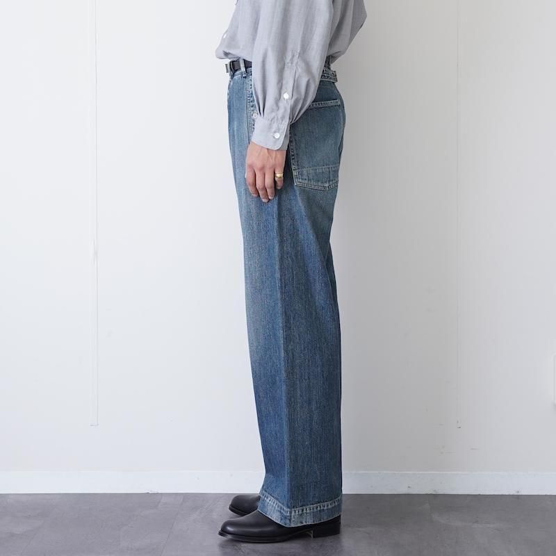 現代の技術で再構築した、過去とつながる一本。 アメリカ産の高品質なコットンを使用した、12ozの白耳セルビッチデニムトラウザー。 1920〜30年代の米陸軍デニムトラウザーをベースに、ワークパンツらしいポケットディテールなどを随所に取り入れたデザインです。 生地は、旧式のシャトル織機で丁寧に織り上げたセルビッチデニム。 肉厚すぎず、軽やかすぎない絶妙な12オンスのバランスで、柔らかく、穿いた瞬間から心地よく馴染みます。 さらに、着用を重ねたかのような自然なタテ落ちと風合いを生む製品加工を、職人の手によって施しました。 モデル身長184cm 体重64kg 着用サイズM SIZE(cm) S:ウエスト80 股上32.5 股下72.5 ワタリ31 裾幅25 M:ウエスト84 股上33.5 股下75 ワタリ32 裾幅26 QUALITY 100% COTTON