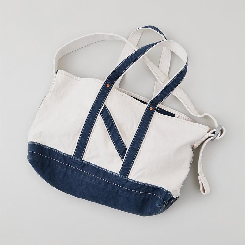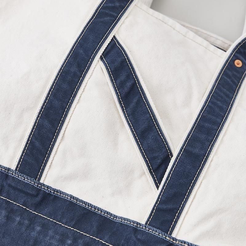 1920〜50年代、米国の作業現場で使われていたツールバッグをリファレンスに、 現代の都市生活にフィットするトートバッグへと再構築しました。 肩掛けもできるショルダーストラップ付きの設計で、機能性と佇まいを両立しています。 生地には、シャトル織機で丁寧に織り上げた6号・10号の帆布を採用。 さらにワッシャー加工とストーンウォッシュを施すことで、 新品でありながら、まるで長年使い込んだような風合いとアタリを表現しています。 素材が語り、ディテールが引き立つ。 過去の記憶と現代の感性が交差する、ヴィンテージライクな一品です。 SIZE(cm) F:タテ38 ヨコ55 マチ20 QUALITY COTTON100%