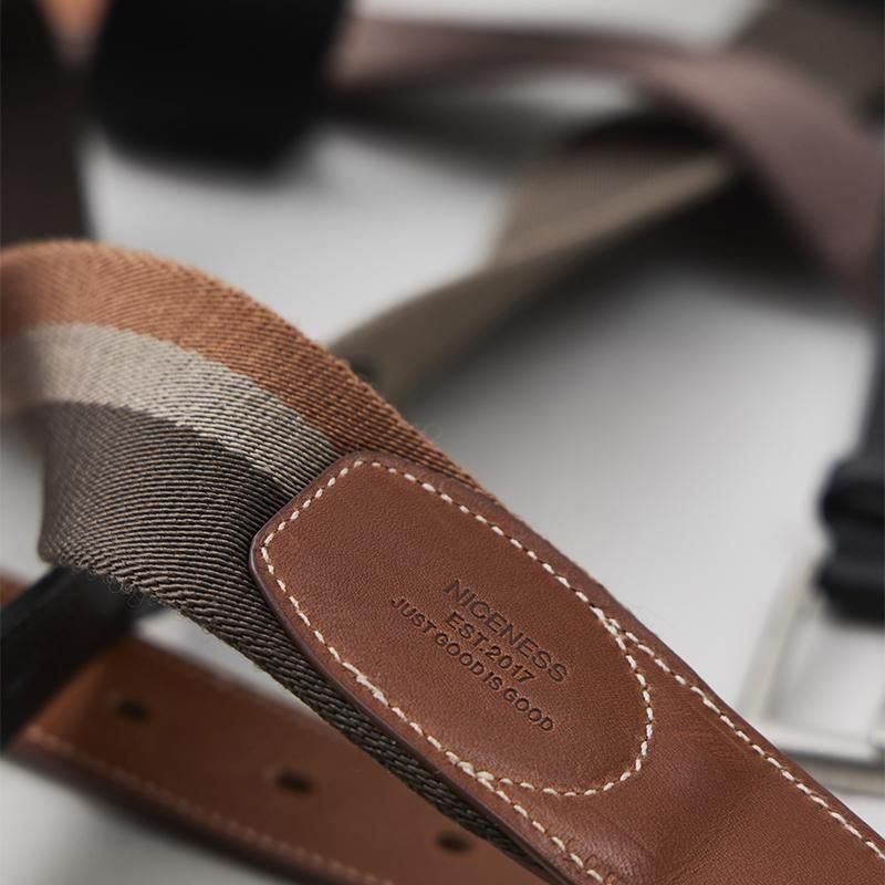 静かに、美しく編まれた一本。 このベルトに使われているのは、イタリアの小さなファクトリーに別注をかけ、昔ながらの織機でゆっくりと高密度に織り上げたビスポークウェビング。 光を柔らかく反射するほのかな光沢と、指先にすっとなじむ滑らかな手触りが、その織りの精緻さを物語ります。 両端を彩るのは、フランス・HAAS社のアルザスレザー。 艶やかで上品なこの革は、ベルトにさりげない気品と芯のある表情を与えています。 手仕事の余白が残された一本には、工業製品では決して生まれない温度と品格があります。 SIZE(cm) 34:全長103 幅4 QUALITY NYLON, CALF LEATHER
