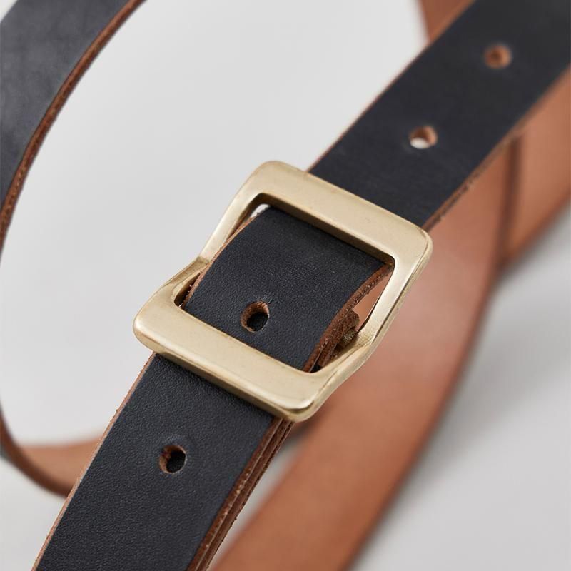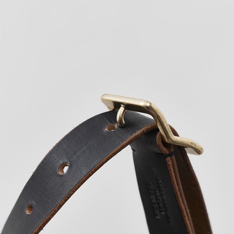 深く、静かに、時を刻む。 このベルトに用いたのは、しっとりとした艶と茶芯の奥行きを併せ持つ、オイルドカウレザー。 深く息づくようなプルアップの色合いは、時間とともにゆっくりと表情を変えていきます。 旧式のハンドアイロンで、幾度となく丁寧に刷り込まれたワックス。 革の銀面を固めることなく、しなやかさと柔らかさを纏わせ、手にした瞬間から、まるで永く使ってきたような馴染みを感じさせます。 重厚でありながら、どこかしっとりとした佇まい。 日常のなかで密やかに寄り添いながら、確かな存在感を放つ一本です。 SIZE(cm) 30:長さ93 幅2.5 32:長さ98 幅2.5 QUALITY COW LEATHER