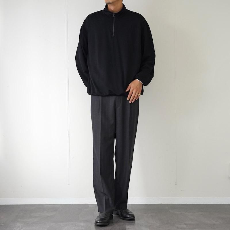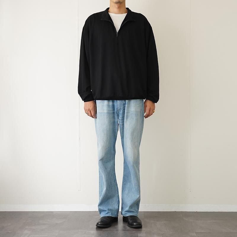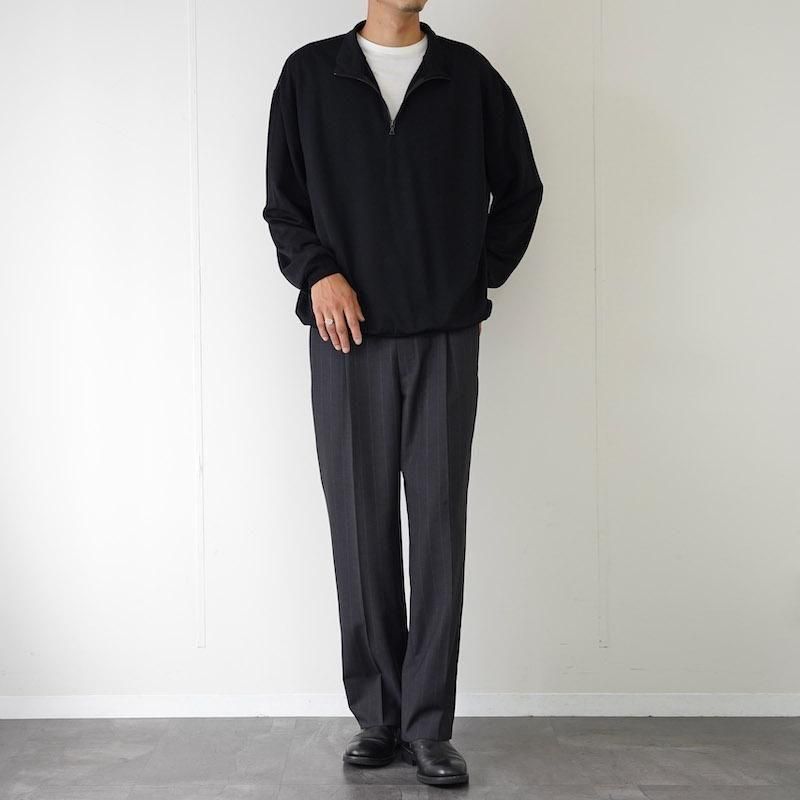 表面と裏面には毛羽をカットしたウール糸を使用し、中糸にはナイロン糸を取り入れて、伸縮性と軽さを実現したスウェットです。 裏面は微起毛仕上げで、柔らかな温もりを感じる風合いを持ち、着心地の良さを引き立てています。 軽快な軽さと上質なウールの温かみが特徴です。 上質なウールをふんだんに使用しながらも、優しい値段設定。 ハーフジップデザインは、着こなしの幅も広く、ミニマルながら機能性も兼ね備えた、日常にフィットする一枚。 【バイヤーズコメント】 旧作だけどauraleeのハーフジップ愛用します。 黒のスラックスに、白のTシャツきかせて合わせてます。 今年だったら、チノやコーデュロイなんかとも相性良さそう。 ちょっとアクセントになるからすごく便利です。 スエットパンツやナイロンパンツとかも合いますよ。 万能な一枚です。 モデル身長184cm 体重64kg 着用サイズ5 SIZE(cm) 3:着丈70.5 肩幅57.5 身幅62 袖丈59.5 4:着丈72.5 肩幅59.5 身幅64 袖丈61 5:着丈74.5 肩幅61.5 身幅66 袖丈62.5 QUALITY WOOL90% NYLON100% RIB:WOOL100%