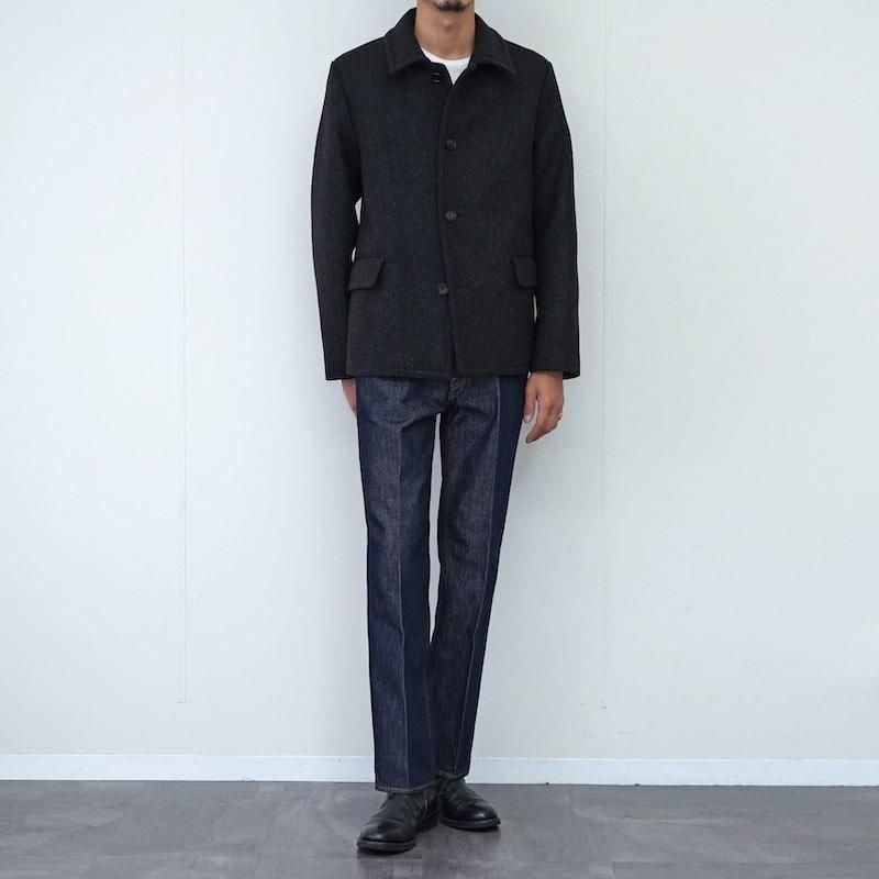 英国羊毛のシェットランドウールをブレンドしたTOP糸を原料に使用し、二重織組織でしっかりと高密度に織り上げた素材です。 シェットランドウール特有のシャリ感と温かみのある質感に加え、クラシックで重厚感のある雰囲気を兼ね備えています。 クラシックとモダンが共存した、どこかクリーンで都会的な雰囲気。 新鮮なスリムフィットは、着たときのラインも綺麗に。美しいシルエットを演出。 ミニマルなディテールで、素材の迫力が際立つ仕上がりです。 【バイヤーズコメント】 新しいシルエットのアウター。コンサバな雰囲気が新鮮です。 加工なしの綺麗なデニムで合わせてもよし、ユーズドライクなデニムとコーディネートの濃淡を 楽しむのもよいかと。もちろんスラックスで。 モデル身長184cm 体重64kg 着用サイズ4 SIZE(cm) 3:着丈71 肩幅44 身幅51.5 袖丈64 4:着丈72.5 肩幅45.5 身幅53.5 袖丈65.5 QUALITY WOOL100%