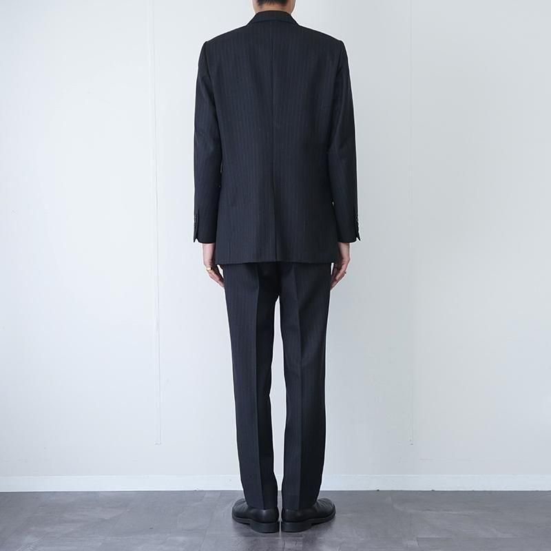 経糸にはSuper130'sのスーパーエキストラファインメリノを、緯糸には英国羊毛のブルーフェイスラスター種原料の梳毛糸を使用した贅沢な素材です。 ブルーフェイス特有のバルキー性と程よい反発力に、スーパーエキストラファインメリノの極上の滑らかさを絶妙に組み合わせることで、上質な質感を実現しました。 高級感あふれる滑らかさと反発性が特徴で、肌触りの良い風合いを存分に楽しめる仕上がりとなっています。 高級素材はブルーフェイス×ファインメリノ。贅のかたまり。シワになりづらく、スタッフも愛用してます。 フルキャンバス=総毛芯の仕立て。オンでもオフでも着回せる、洗練されたストライプ柄。 【バイヤーズコメント】 これをどういいのかを伝えるのって難しい。 堅すぎず、ラフすぎずといった絶妙な塩梅なんです。 肩周りの構築はしっかりとしているのですが ウエストシェイプはなくストンとしたシルエットなので オンでもオフでも使えるんです。 なんとなくジャケット作ってるわけじゃないのがすごくわかるんだけど ジャケットってみんな同じように見えちゃいますよね。 肩幅は少し余裕を持った設定、袖丈もちょっと長め。 カチッとしないけど、なんかサイズ合ってないよね〜みたいにもならないんです。 セットアップでもいいし、デニムとかで合わせてアウター代わりにもなります。 一枚あれば結婚式にも行けちゃいます。 モデル身長184cm 体重64kg 着用サイズ4 SIZE(cm) 3:着丈78 肩幅42 身幅51 袖丈63 4:着丈79 肩幅44 身幅53 袖丈65 QUALITY WOOL100%