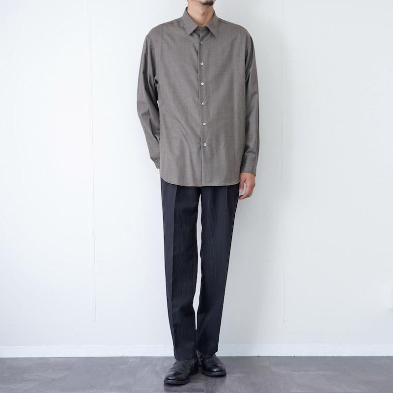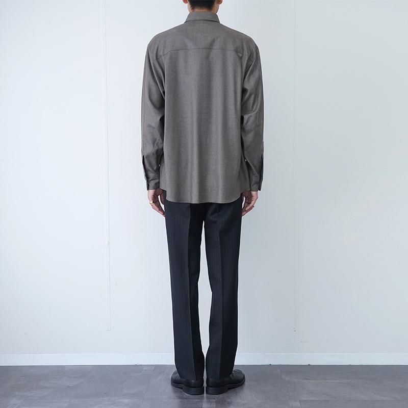 上質なウールを超極細番手の梳毛に紡績した糸を使用し、環境に配慮した特殊な防縮加工を施したウールビエラ素材です。 独特の落ち着いた質感と美しい光沢、そしてなめらかで軽やかな素材感が特徴です。 毎回リリースされる度に即完のウールシャツ。今季も洗練されたカラーリング。 カシミヤに迫る滑らかさ、ラグジュアリー感を持った生地。 ビエラ織り(綾織)特有のとろみ感。シャツでありながら、ドレープがしっかり出る。布の落ち感でシルエットが決まるシャツ。 【バイヤーズコメント】 とにかく綺麗なシャツです。絶対いいやつ着てると思われるはず。 すごくシンプルです。 何にでも合います。 ウールなので基本的に洗濯したりしない方がいいです。 臭いが付いたら陰干しで風にあてましょう。 シーズン終わりにクリーニングぐらいで、楽でいいです。 その方がずっと綺麗に着れます。 ウールは洗わない方がいいよ。 羊も外にいるけど白いでしょ。 モデル身長184cm 体重64kg 着用サイズ4 SIZE(cm) 3:着丈77 肩幅52.5 身幅62 袖丈60 4:着丈79 肩幅54 身幅64 袖丈61 QUALITY WOOL100%