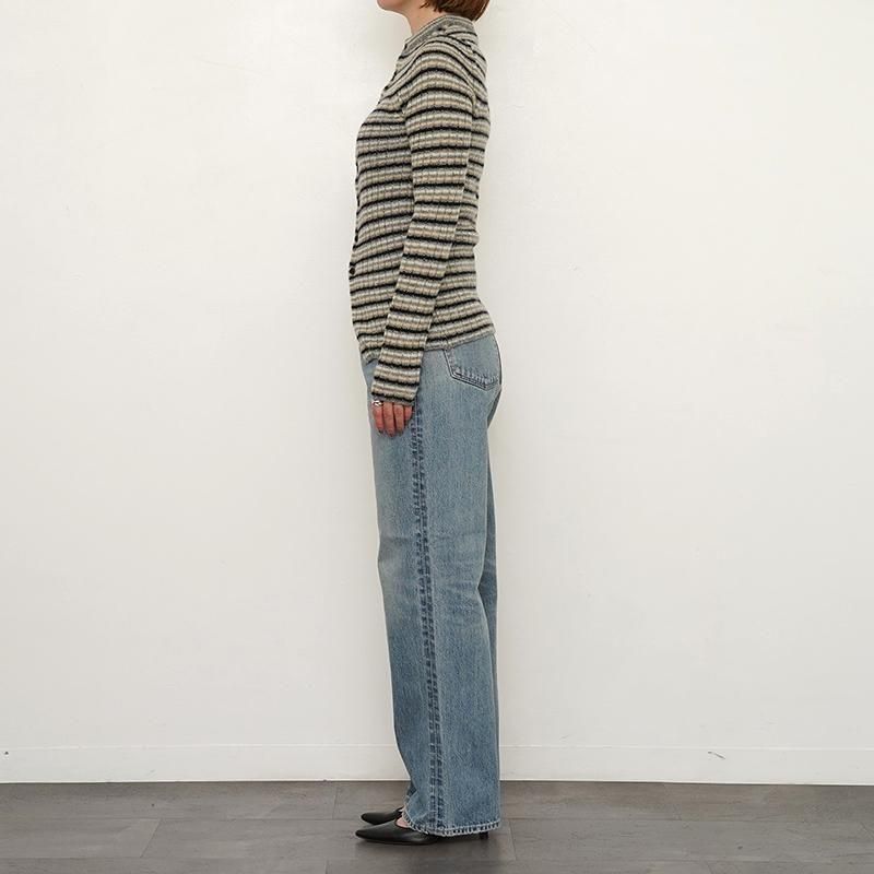 AURALEEの2025 AUTUMN & WINTERの入荷は終了しました。 シェットランドウールとカシミヤを混紡し、ローゲージで編んだニットです。 シェットランドの独自のハリ感とカシミヤの滑らかで柔らかな風合いを兼ね備えた素材です。軽さと柔らかさが共存した独特な風合いが特徴です。 【スタッフコメント】 ルックの中でもひと際目を引いた、ボーダーニットのレイヤードスタイル。 AURALEEの作り出すボーダーやストライプはどこか知的でクリーンなんです。 それでいて自然と日常にも馴染んでくれる。 今季の新作は長めに設計された着丈も印象的。 Iラインのスカートやタックパンツとの相性も抜群です。 モデル身長155cm 着用サイズ0 SIZE(cm) 0:着丈64 肩幅24.5 身幅32 袖丈67.5 1:着丈66 肩幅26 身幅34 袖丈69 QUALITY WOOL62% CASHMERE38%