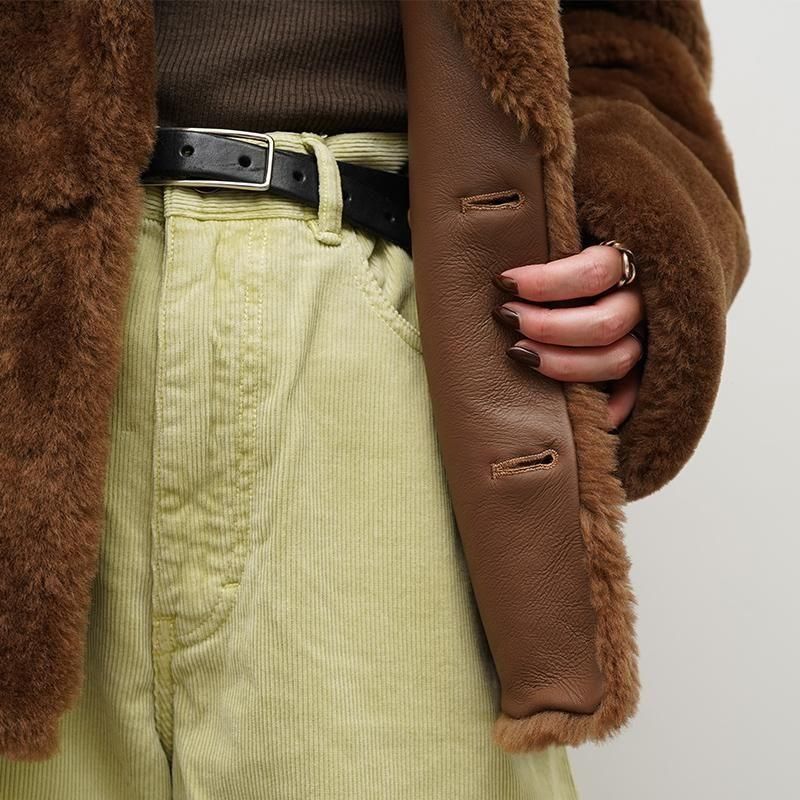 トルコ産の厳選された原皮の羊毛をストレートに加工し、ボリューム感と柔らかさを兼ね備えたウールムートンです。 レザー面(裏面)にはナッパラン加工を施し、軽量感を追求した1枚仕立てに仕上げています。 素材そのものが持つ豊かな風合いと上質な仕上がりが特徴です。 【スタッフコメント】 高品質な素材を使用することでこのデザインが引き立つ、そんなアイテムです。 素材のボリュームとクリーンなシルエットのバランスが絶妙です。 実用的な暖かさとスポンジのような柔らかな風合い。 クラッシックなスタイルにぴったりとフィットしてくれます。 特別なファーアイテム、ぜひお試しください。 モデル身長155cm 着用サイズ0 SIZE(cm) 0:着丈62.5 肩幅50 身幅58.5 袖丈56.5 QUALITY LAMB LEATHER(MOUTON)