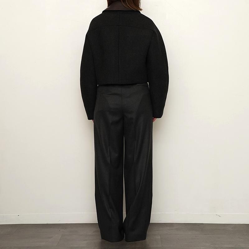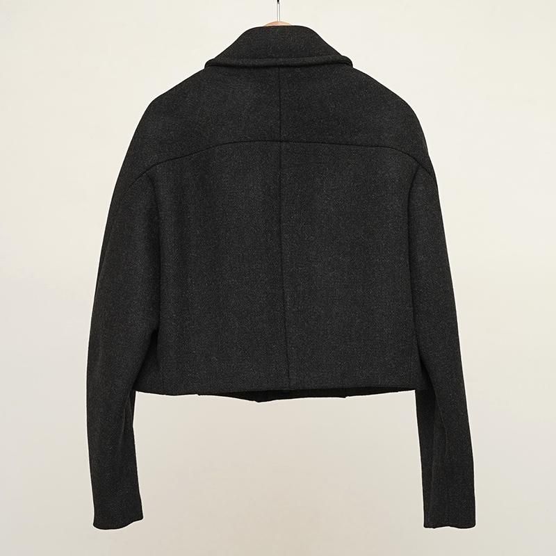 高級感のあるヘリンボーンはクラシカルな印象、しかしながらシルエットはショート丈で現代的。