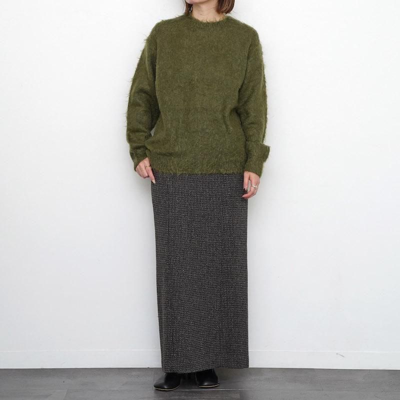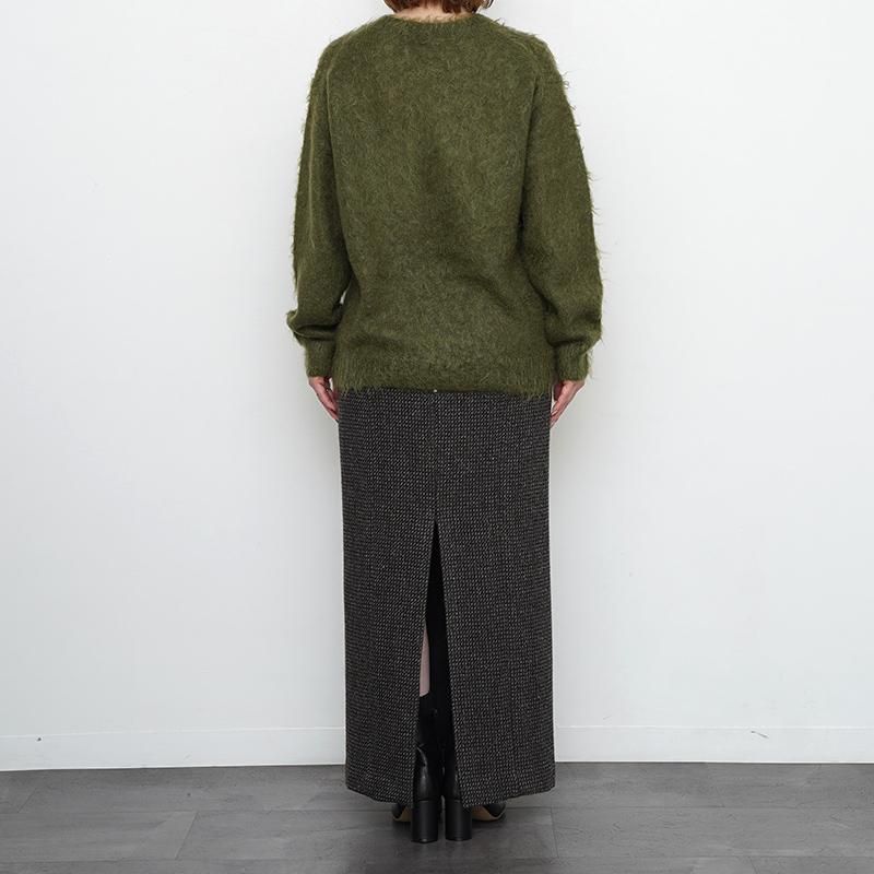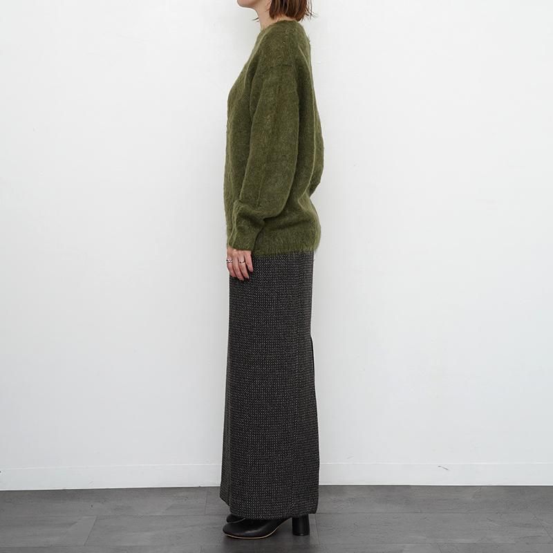 南アフリカ産の柔らかなスーパーキッドモヘヤを甘撚りに紡績し、芯糸には柔らかな天然ウールを使用して編み上げた、ふんわりとした温かみを感じる極上のモヘヤニットです。