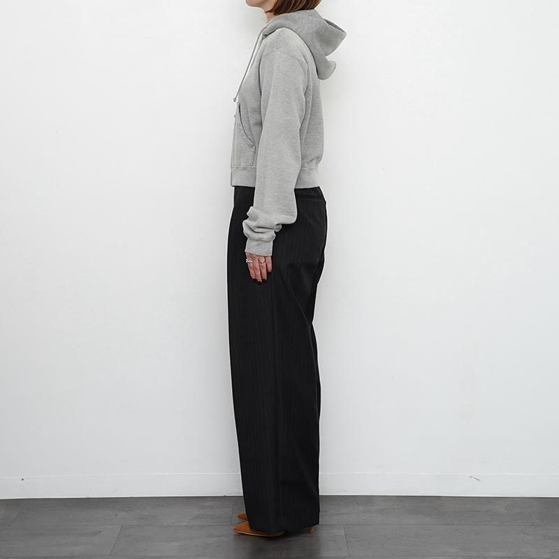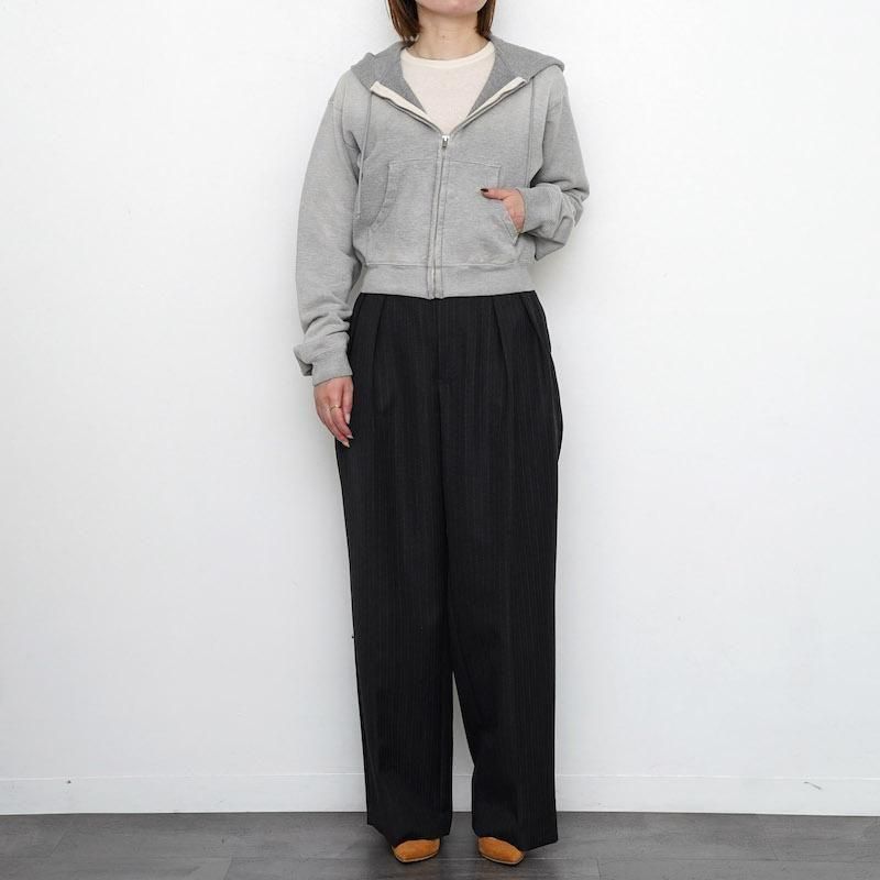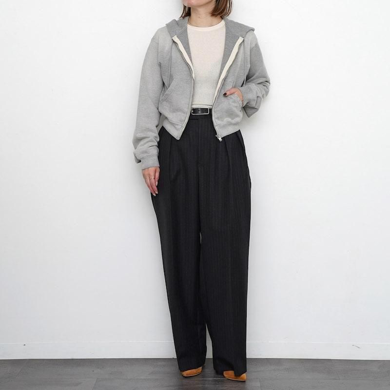 ピマコットンと弾力のある空紡糸を用いて編まれたスウェット素材です。 表糸には超長綿のピマコットン、裏糸には弾力のある空紡糸を採用し、高品質な原料とヴィンテージ機械を駆使して仕上げています。 独特の薄さと弾力を兼ね備えた、軽やかでありながらも豊かな素材感が特徴です。 縫製後には製品染めを施し、まるで長年使い込んだかのような、深みのある色味を表現しています。 【スタッフコメント】 自ら使い込まなくても、ヴィンテージライクな風合いが楽しめるスウェット。 ヨレや毛玉のない上質な仕上がりで「良いもの」を身に着ける満足感を味わえます。 見た目は重厚感がありながら、軽やかな着心地でストレスフリー。 トレンドのコンパクトなシルエットに加え、フルジップ仕様なので羽織りとしても活躍。 季節の変わり目など、早い時期から長く使える一着です。 モデル身長155cm 着用サイズ1 SIZE(cm) 1:着丈45 肩幅43 身幅45 袖丈60.5 QUALITY COTTON100%
