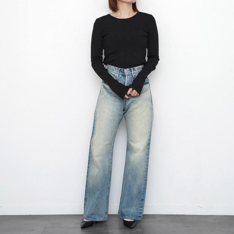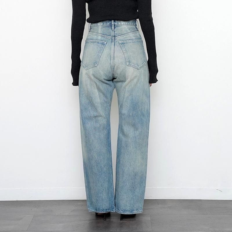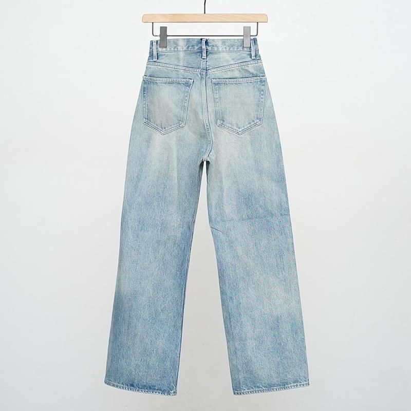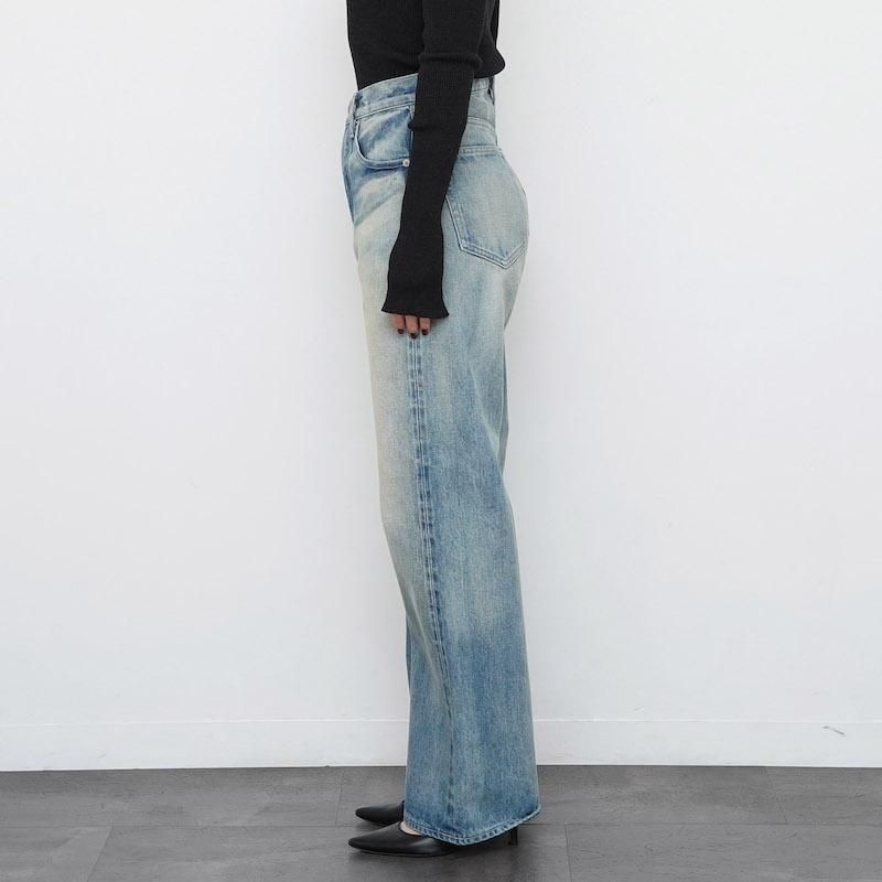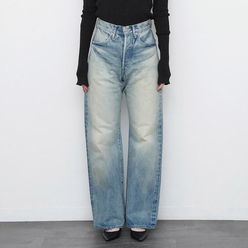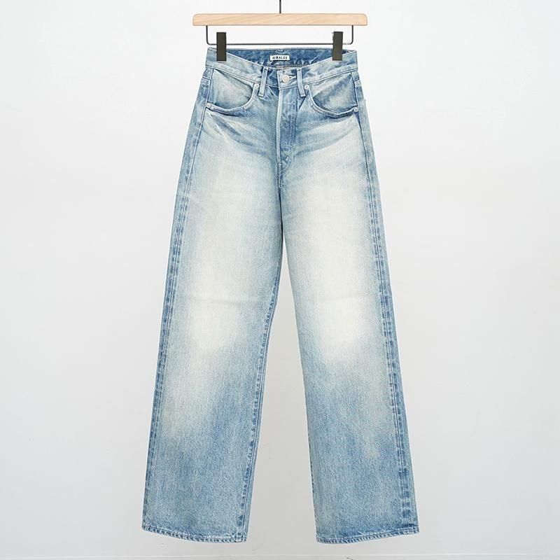 ※お一人様1品番1点のみとさせていただきます。 AURALEEの2025 AUTUMN & WINTERの入荷は終了しました。 ビンテージデニムの風合いを追求し、シャトル織機を使用してじっくりと時間をかけて織り上げた、やや厚手のデニム素材です。 熟練した職人の手作業による繊細な加工が施され、1枚1枚に異なる表情を生み出しています。 絶妙な色落ちや深みのある風合いが特徴で、長年使い込んだかのような味わいを感じさせる仕上がりとなっています。 【スタッフコメント】 今AURALEEのボトムスの中でも最も注目を集めているのがこのデニム。 本格的な加工が施されヴィンテージライクな雰囲気を持ちながらもシルエットは洗練されたモードな仕上がり。 職人による手作業と今の気分にぴったりとバランスが融合したまさに特別な一本です。 店頭ではオープン前から行列ができ、オンラインでも数秒で完売するほどの人気ぶり。 今年も争奪戦になることは間違いありません。 モデル身長155cm 着用サイズ24 SIZE(cm) 24:ウエスト66 股上27.5 股下71 ワタリ31.5 裾幅24 25:ウエスト70 股上28 股下72.5 ワタリ32.5 裾幅24.5 QUALITY COTTON100%