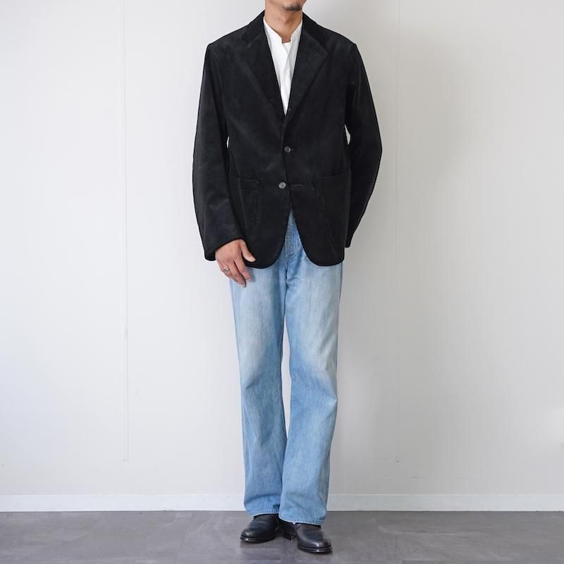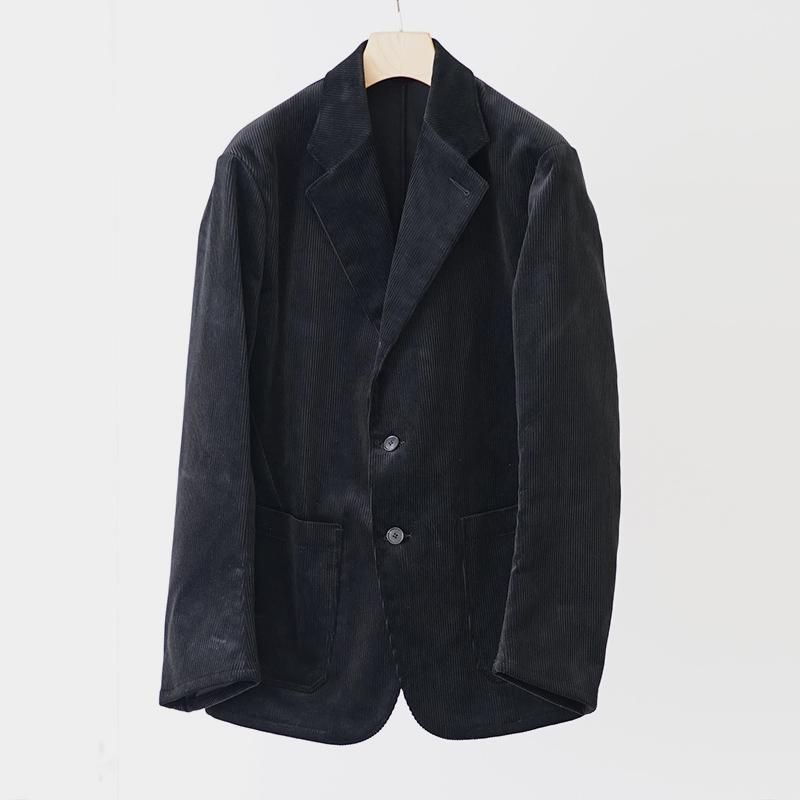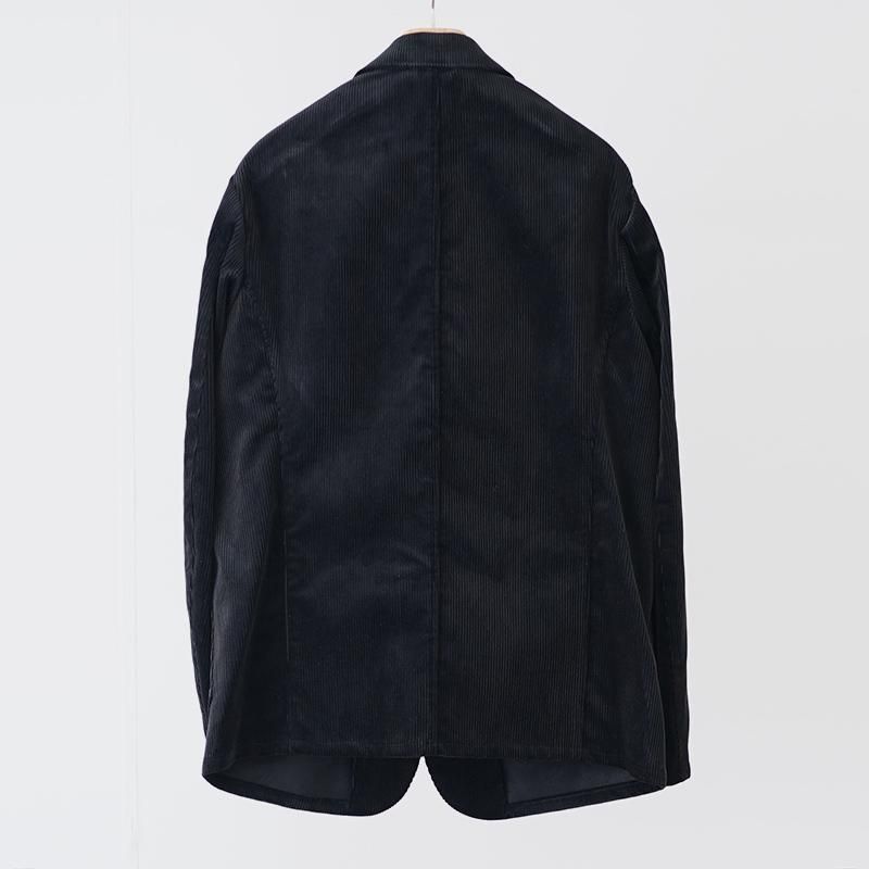 イギリスのコーディロイメーカーのヘビーウェイト素材を使用。イギリスの40年代のワークジャケットをベースに男らしいジャケットを作成。 厚みあるリブが織り込まれたコーデュロイは、しっかりとしたハリを持ち、立体感のあるシルエットを作り出します。 シングルブレストの仕立てでありながら、肩のラインや胸部の構造にわずかなゆとりを持たせることで、重厚な生地でありつつも動きやすく、全体としてスマートに見えるバランス。 ボタンの留め方で2B的にも3B的にも見せられます。 モデル身長184cm 体重64kg 着用サイズ3 SIZE(cm) 1:着丈73.5 肩幅45 身幅53 袖丈63 2:着丈75 肩幅46 身幅55 袖丈64 3:着丈78 肩幅47 身幅58 袖丈66 QUALITY COTTON 100%