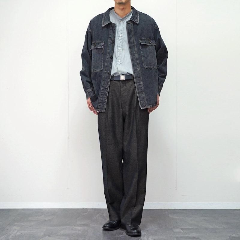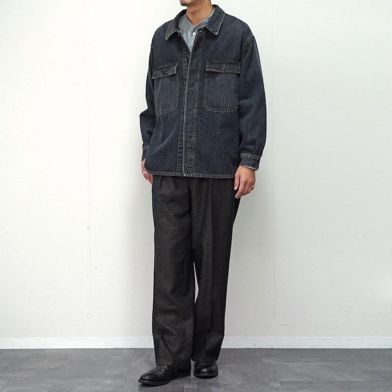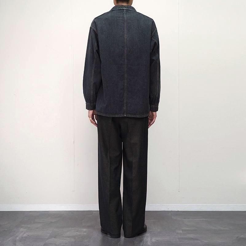 1950〜60年代のフランス海軍作業用ブルゾンをベースにデザインされた「VESTE BERMS」。 実用性を重視したワークウェアの構造を受け継ぎながら、OUTIL独自のパターンワークによって現代的に再構築。 縦糸をロープ染色(インディゴは天然藍)で色落ちを楽しめるように開発し、緯糸にはコットンとヘンプの混紡糸を打ち込んだOUTILオリジナルのデニム生地。 着用を重ねることで自然な色落ちを楽しめます。 コットンの柔らかさとヘンプのドライな質感が融合した、独特のハリと深みのある表情が特徴です。 フェード感など、手仕事による繊細な仕上げが加えられ、 まるでヴィンテージを着込んだような存在感を放ちます。 さらなる経年変化とともに自分だけの一着へと育てていける、OUTILらしい逸品です。 モデル身長184cm 体重64kg 着用サイズ3 SIZE(cm) 1:着丈76 肩幅51 身幅57 袖丈59 2:着丈78 肩幅53 身幅59 袖丈60 3:着丈79 肩幅55 身幅60 袖丈61 QUALITY COTTON83% HEMP17%
