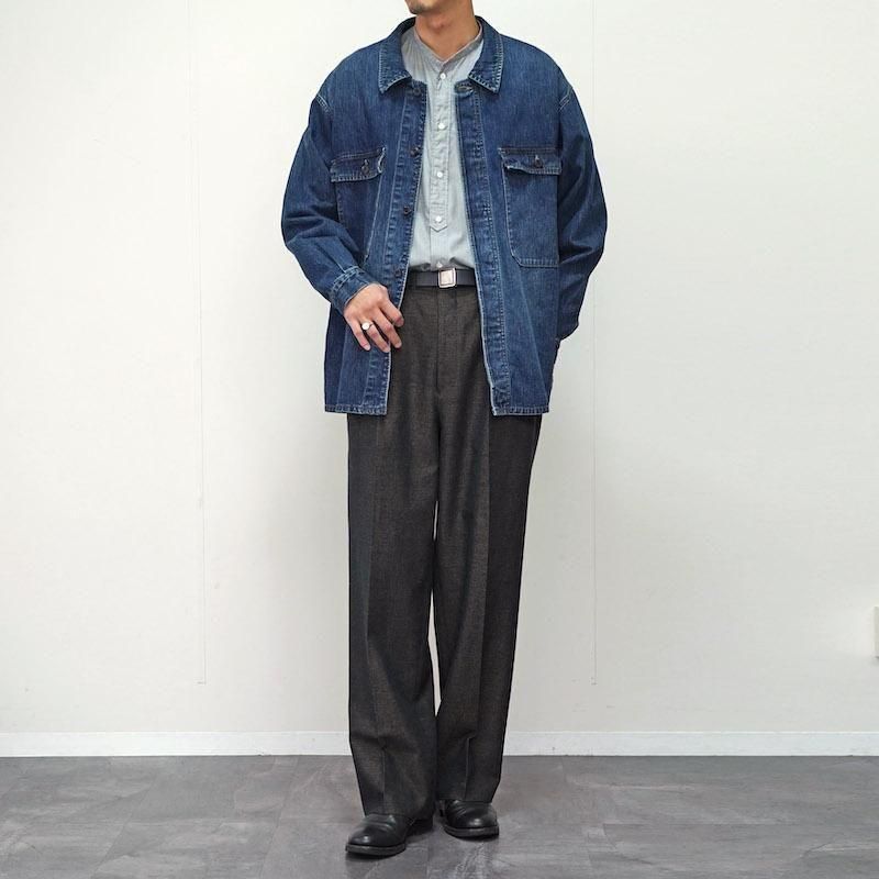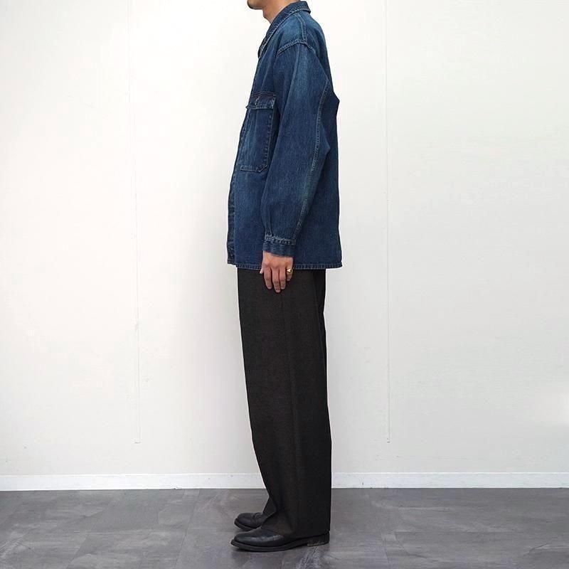 1950〜60年代のフランス海軍作業用ブルゾンをベースにデザインされた「VESTE BERMS」。 実用性を重視したワークウェアの構造を受け継ぎながら、OUTIL独自のパターンワークによって現代的に再構築。 縦糸をロープ染色(インディゴは天然藍)で色落ちを楽しめるように開発し、緯糸にはコットンとヘンプの混紡糸を打ち込んだOUTILオリジナルのデニム生地。 着用を重ねることで自然な色落ちを楽しめます。 コットンの柔らかさとヘンプのドライな質感が融合した、独特のハリと深みのある表情が特徴です。 フェード感など、手仕事による繊細な仕上げが加えられ、 まるでヴィンテージを着込んだような存在感を放ちます。 さらなる経年変化とともに自分だけの一着へと育てていける、OUTILらしい逸品です。 モデル身長184cm 体重64kg 着用サイズ3 SIZE(cm) 1:着丈76 肩幅51 身幅57 袖丈59 2:着丈78 肩幅53 身幅59 袖丈60 3:着丈79 肩幅55 身幅60 袖丈61 QUALITY COTTON84% HEMP16%