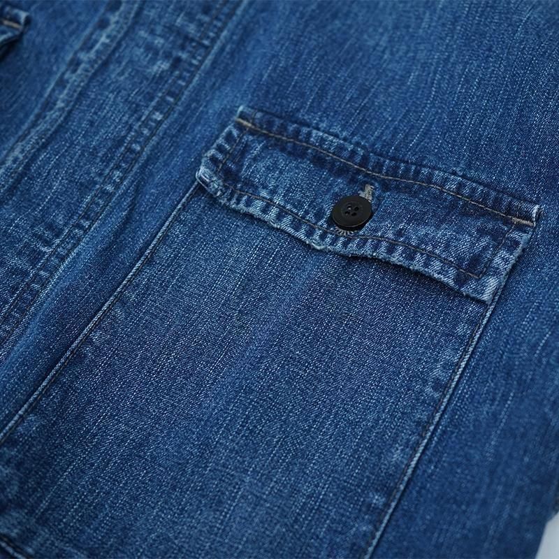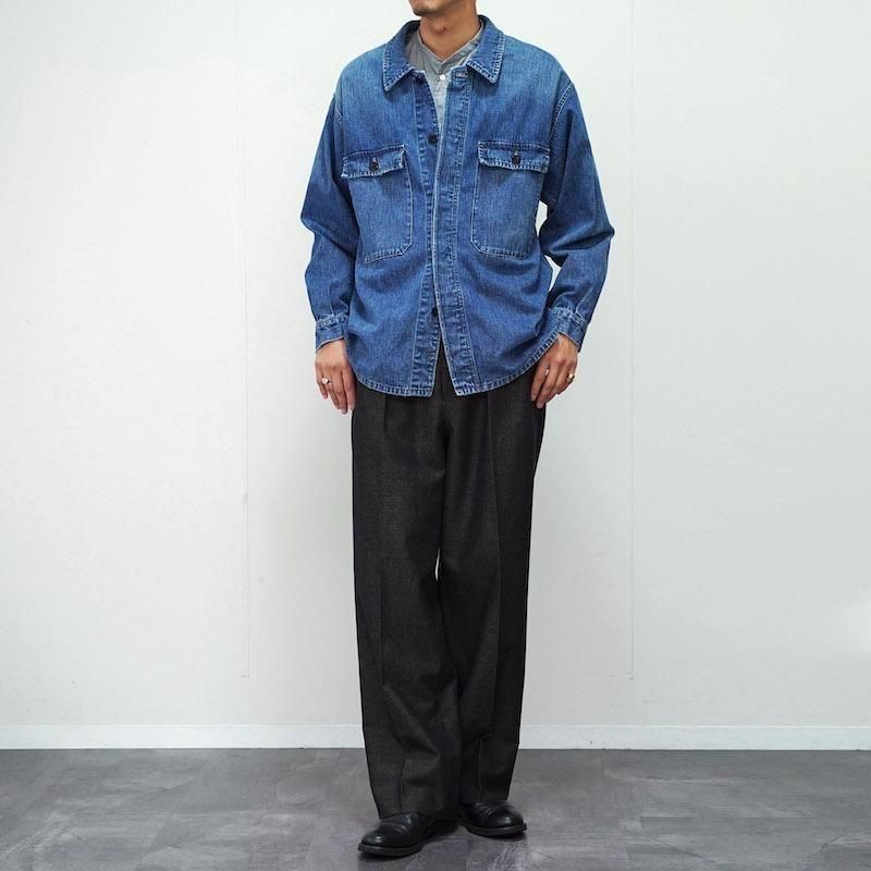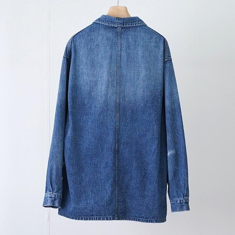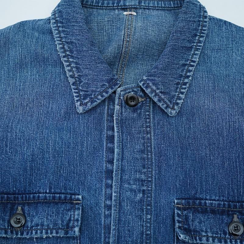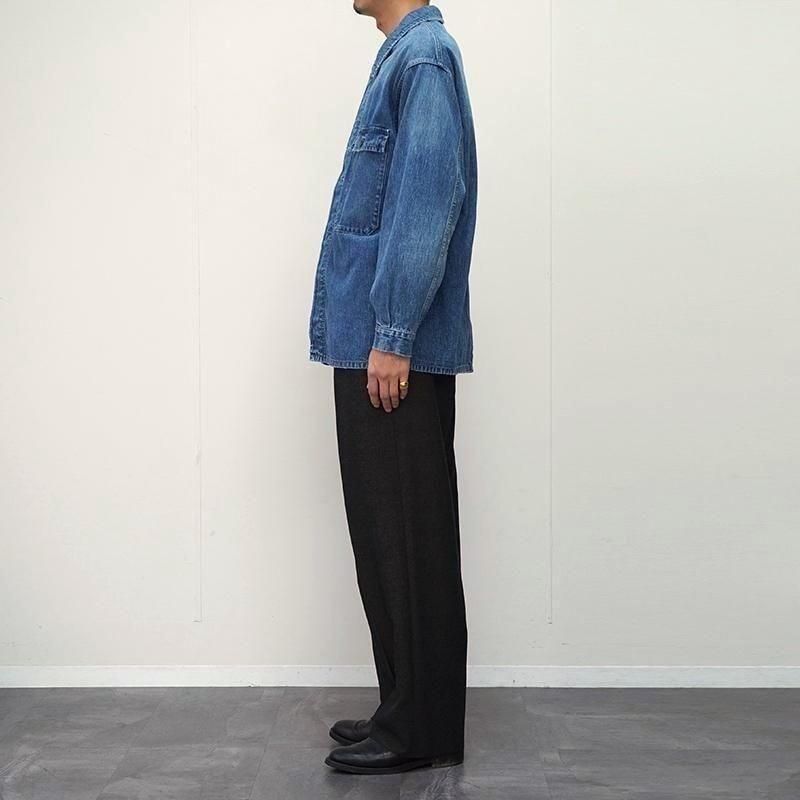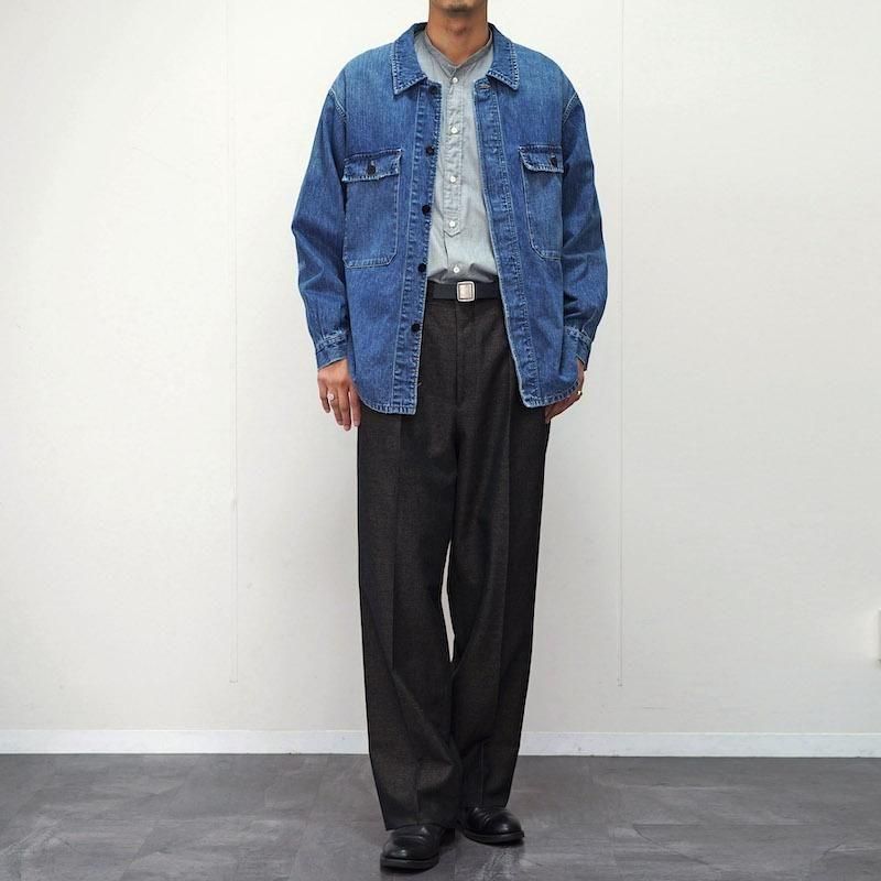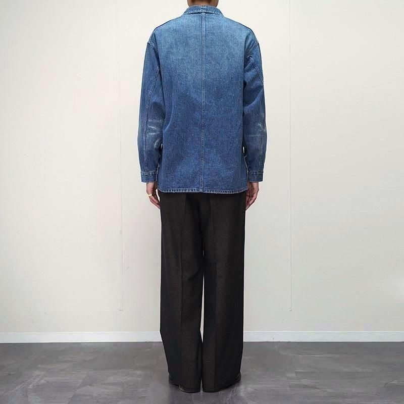 1950〜60年代のフランス海軍作業用ブルゾンをベースにデザインされた「VESTE BERMS」。 実用性を重視したワークウェアの構造を受け継ぎながら、OUTIL独自のパターンワークによって現代的に再構築。 縦糸をロープ染色(インディゴは天然藍)で色落ちを楽しめるように開発し、緯糸にはコットンとヘンプの混紡糸を打ち込んだOUTILオリジナルのデニム生地。 着用を重ねることで自然な色落ちを楽しめます。 コットンの柔らかさとヘンプのドライな質感が融合した、独特のハリと深みのある表情が特徴です。 リペア加工やフェード感など、手仕事による繊細な仕上げが加えられ、 まるでヴィンテージを着込んだような存在感を放ちます。 さらなる経年変化とともに自分だけの一着へと育てていける、OUTILらしい逸品です。 モデル身長184cm 体重64kg 着用サイズ3 SIZE(cm) 1:着丈76 肩幅51 身幅57 袖丈59 2:着丈78 肩幅53 身幅59 袖丈60 3:着丈79 肩幅55 身幅60 袖丈61 QUALITY COTTON84% HEMP16%