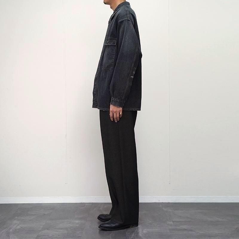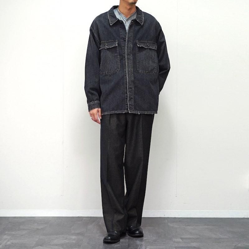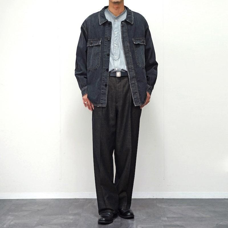 1950〜60年代のフランス海軍作業用ブルゾンをベースにデザインされた「VESTE BERMS」。 実用性を重視したワークウェアの構造を受け継ぎながら、OUTIL独自のパターンワークによって現代的に再構築。 縦糸をロープ染色(インディゴは天然藍)で色落ちを楽しめるように開発し、緯糸にはコットンとヘンプの混紡糸を打ち込んだOUTILオリジナルのデニム生地。 着用を重ねることで自然な色落ちを楽しめます。 コットンの柔らかさとヘンプのドライな質感が融合した、独特のハリと深みのある表情が特徴です。 リペア加工やフェード感など、手仕事による繊細な仕上げが加えられ、 まるでヴィンテージを着込んだような存在感を放ちます。 さらなる経年変化とともに自分だけの一着へと育てていける、OUTILらしい逸品です。 モデル身長184cm 体重64kg 着用サイズ3 SIZE(cm) 1:着丈76 肩幅51 身幅57 袖丈59 2:着丈78 肩幅53 身幅59 袖丈60 3:着丈79 肩幅55 身幅60 袖丈61 QUALITY COTTON83% HEMP17%