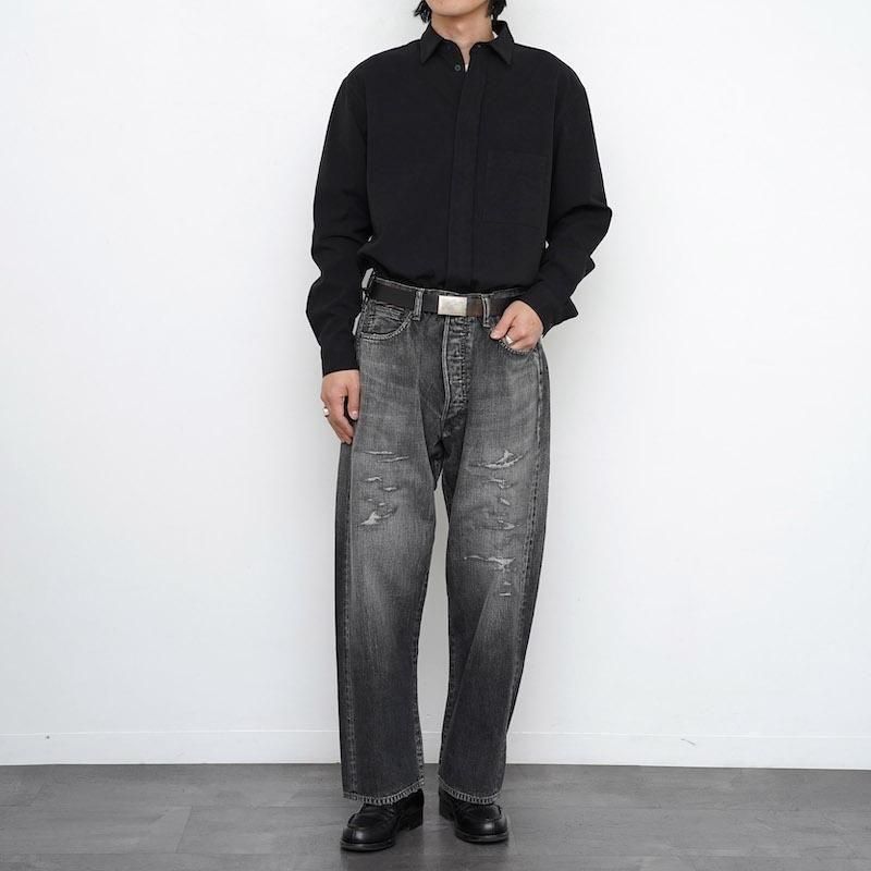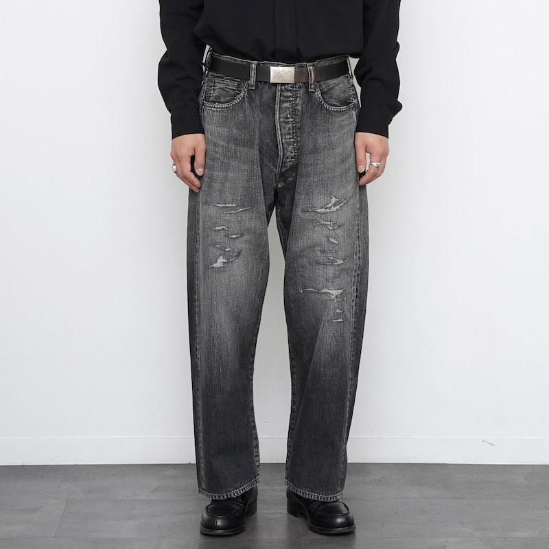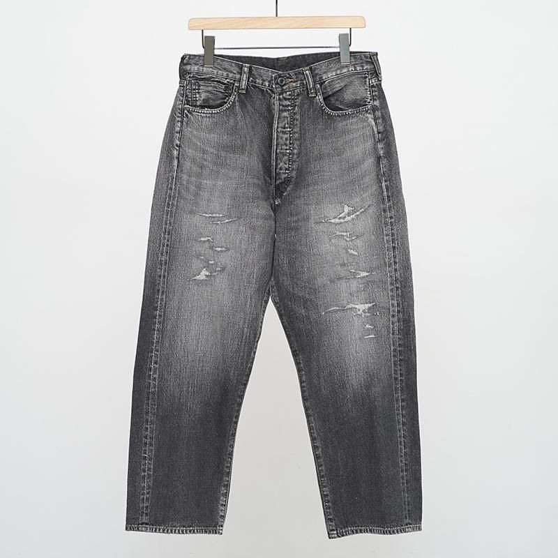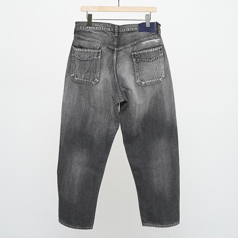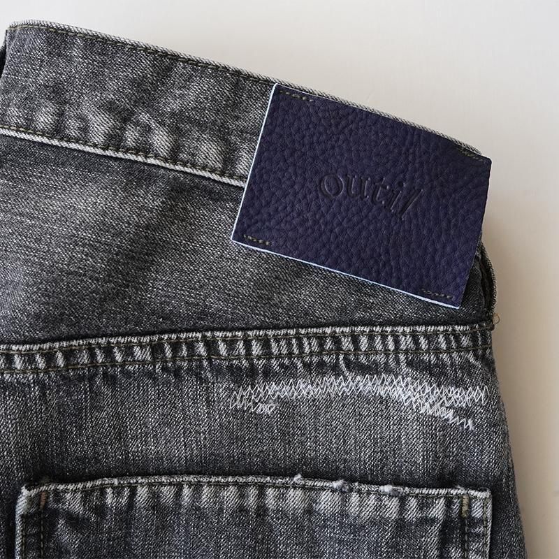 縦糸にロープ染色を施し、横糸にはヘンプとコットンの混紡糸を使用したオリジナルデニム生地に、リペア加工をプラス。ヴィンテージの風合いをさらに引き立て、穿き込んだような味わいを持たせています。 生地のドライなタッチとUSED感に、パッチやステッチで施された補修のディテールが重なり、個性のある表情に仕上がっています。 ベースとなるのは 1960sフランス製デニムパンツ。ルーズフィットで後ろ姿に程よいゆとりを残しつつ、前から見ても美しいラインを保っています。 フロントのボタンフライ、インディゴレザーパッチ、丁寧に形成されたバックポケットに加え、リペア加工ならではのステッチや補強パッチがデザインポイントに。古き良きワークウェアの雰囲気を生かしながら、現代的な味わいも楽しめます。 気負わず穿けるラフさと、どこか端正な佇まい。 素材・シルエット・ディテール・リペア加工が調和した、個性豊かな一本です。 モデル身長173cm 体重59kg 着用サイズ2 SIZE(cm) 1:ウエスト79 股上32 股下69 ワタリ34 裾幅22 2:ウエスト82 股上33 股下71 ワタリ35 裾幅22.5 3:ウエスト86 股上34 股下73 ワタリ36 裾幅23 QUALITY COTTON84% HEMP16% COW LEATHER