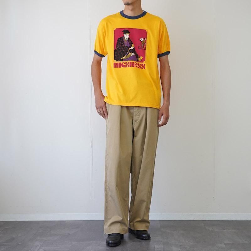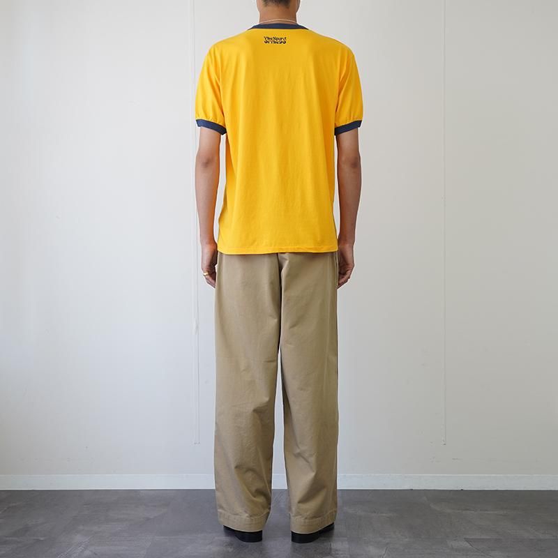 浮世絵をイメージして制作したオリジナルの茶道デザインTシャツ。1980年代のヴィンテージスポーツTシャツをリファレンスとし、日本の精神文化を表す「道」の概念を千利休の哲学になぞらえて表現しています。ボディはベーシックなコットン100%の 天竺、トリムは80年代のムードが漂う配色のバインダー仕様でオリジナルパターンのリンガーTeeです。 モデル身長184cm 体重64kg 着用サイズL SIZE(cm) S:着丈71 肩幅50 身幅55 袖丈22 M:着丈73 肩幅51.5 身幅57 袖丈22.5 L:着丈75 肩幅53 身幅59 袖丈23 QUALITY COTTON100%
