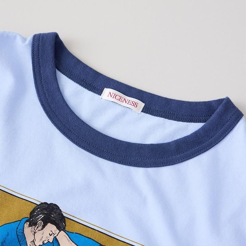 柔道をイメージして制作したオリジナル柄のデザインTシャツ。1980年代のヴィンテージスポーツTシャツをリファレンスとし、日本の精神文化を表す「道」の概念を柔道の哲学になぞらえて表現しています。ボディはベーシックなコットン100%の天竺、トリムは80年代のムードが漂う配色のバインダー仕様。オリジナルパターンのリンガーTeeです。当時のセールスマンサンプルTシャツのように、NICENESSのブーツを柔道家の足元に取り入れたデザイン。 モデル身長184cm 体重64kg 着用サイズL SIZE(cm) S:着丈71 肩幅50 身幅55 袖丈22 M:着丈73 肩幅51.5 身幅57 袖丈22.5 L:着丈75 肩幅53 身幅59 袖丈23 QUALITY COTTON100%