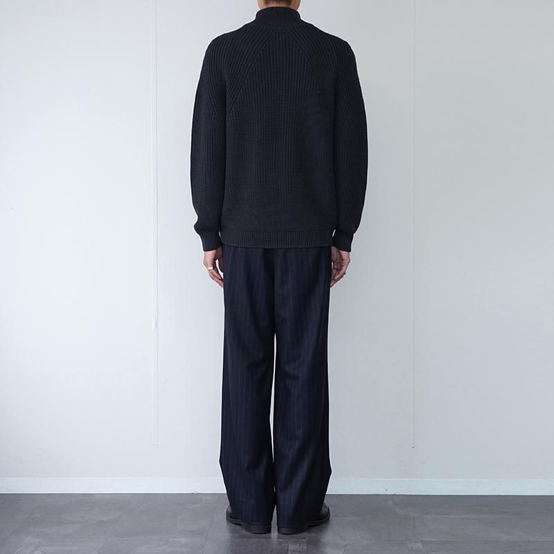 バトナーSIGNATUREシリーズの、ドライバーズニット。 ダブルジップを採用しており、微妙な開け閉めのニュアンスで様々な着こなし方を楽しめます。 肌寒い時期はアウターとして、本格的な冬にはインナーとしても、フロントジップがアクセントとなり、長い時期の着用が可能です。 今季も美しい編み地とカラーリングで、1枚ではもちろん、アウターの中から差し色として見せたりと、コーディネートの核として活躍いたします。 "SOLID WOOL"というこのシリーズのために独自開発をした糸へアップデート。 ドライなタッチでウール特有のチクチクがほぼ無く、毛玉も出来にくくダレにくいといった機能性も◎ ラグラン仕様のスタンダードなシルエットなこともあり、廃れることなく長く愛用することが可能。 ツルっとした滑らかな畦編みは見た目の上質さだけでなく、着ている本人も高揚感の上がる素敵なニットです。 ファクトリーブランドだからこそ実現している価格帯もとても魅力的。 スタンダードだからこそ常に活躍してくれる1着です。 モデル身長184cm 体重64kg 着用サイズ3 SIZE(cm) 2:着丈67 身幅54.5 裄丈82 3:着丈69.5 身幅56.5 裄丈83 QUALITY WOOL100%