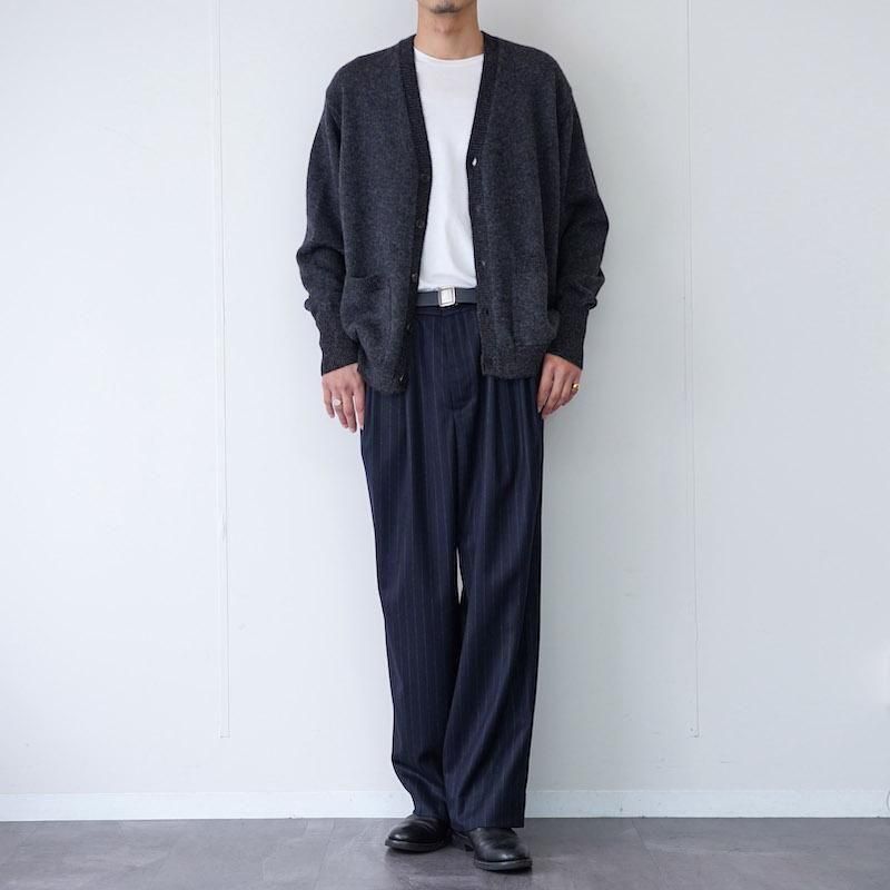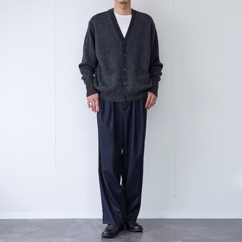 素材感と色味の奥行きがあるため、シンプルなスタイリングでも絵になる一着です。シャツ+スラックスで品のあるきれいめカジュアルやコートの下に差し込んで、冬のレイヤードにも。