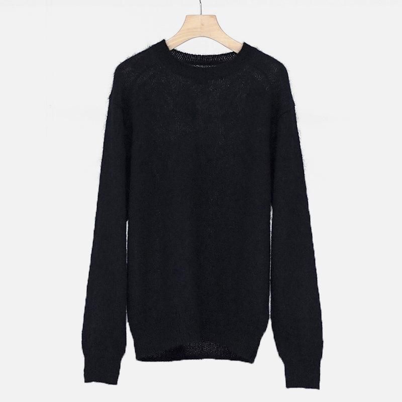 モヘヤ100%のふんわりとした風合いが魅力のクルーネックニット。